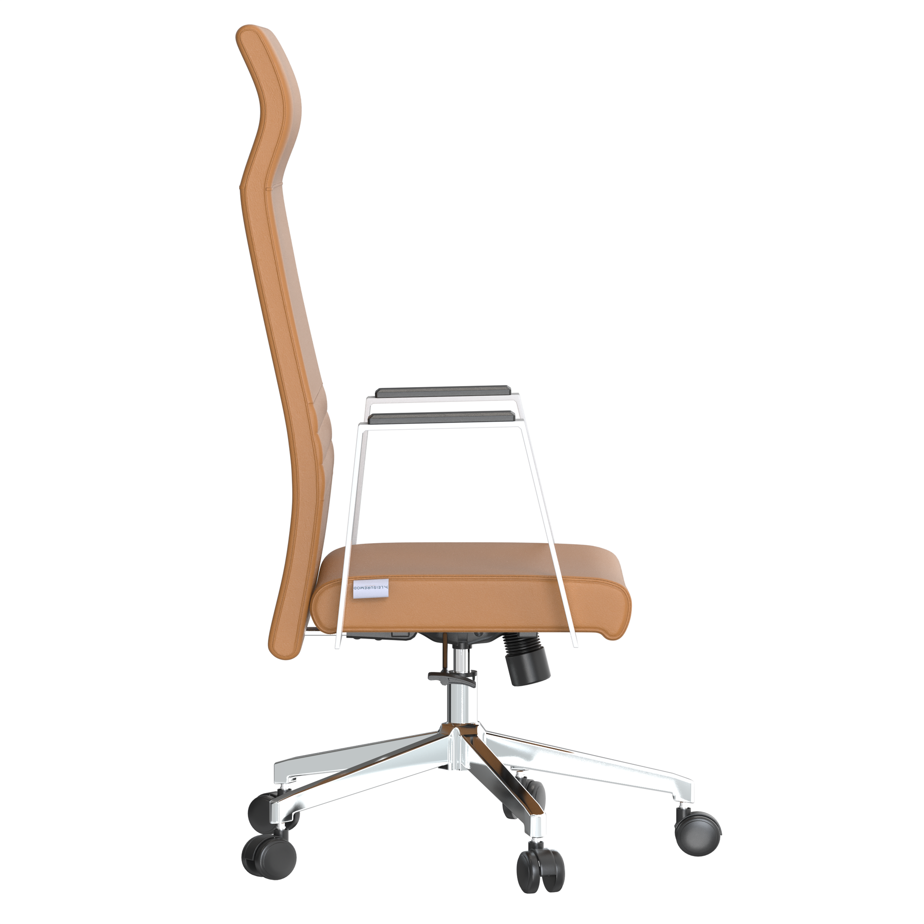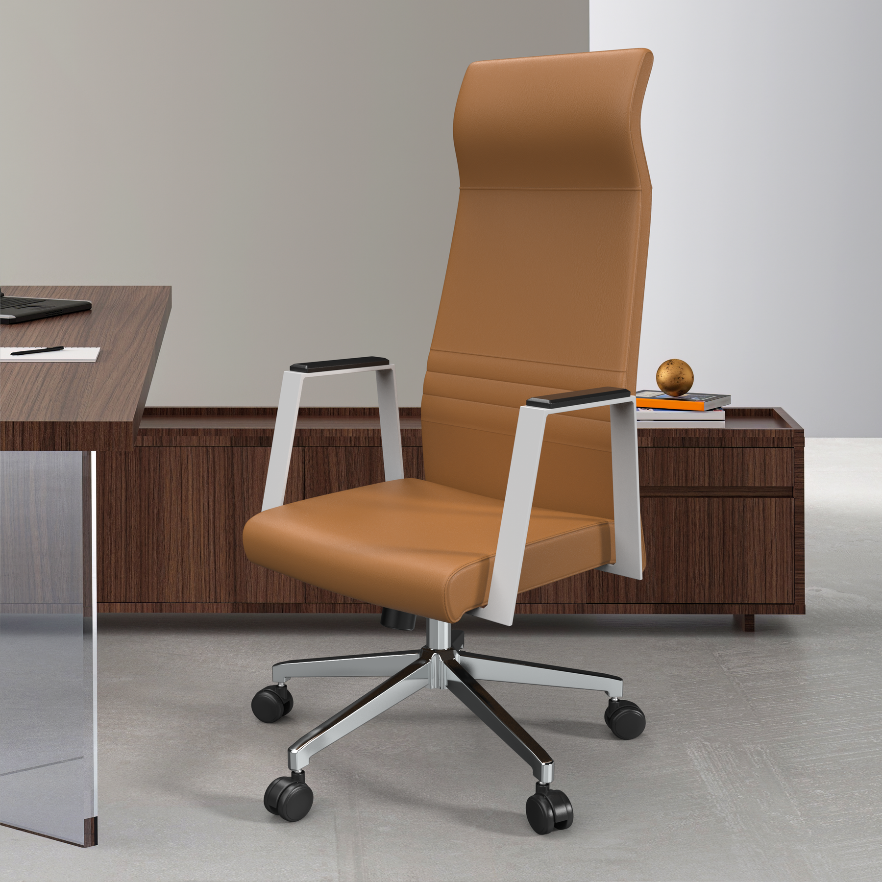 Aleen High-Back Office Chair in Upholstered Leather and Iron Frame with Swivel and Tilt in Acorn Brown