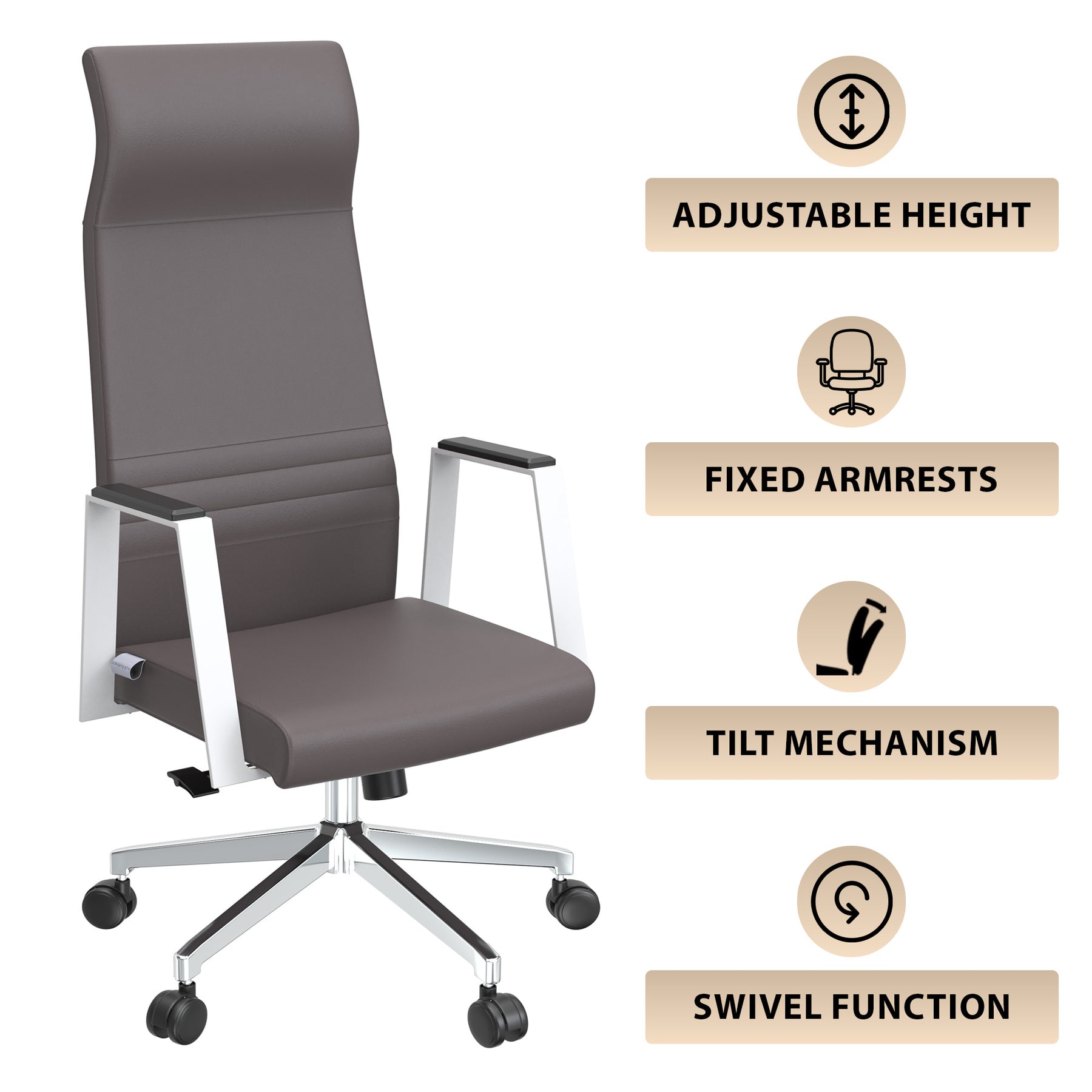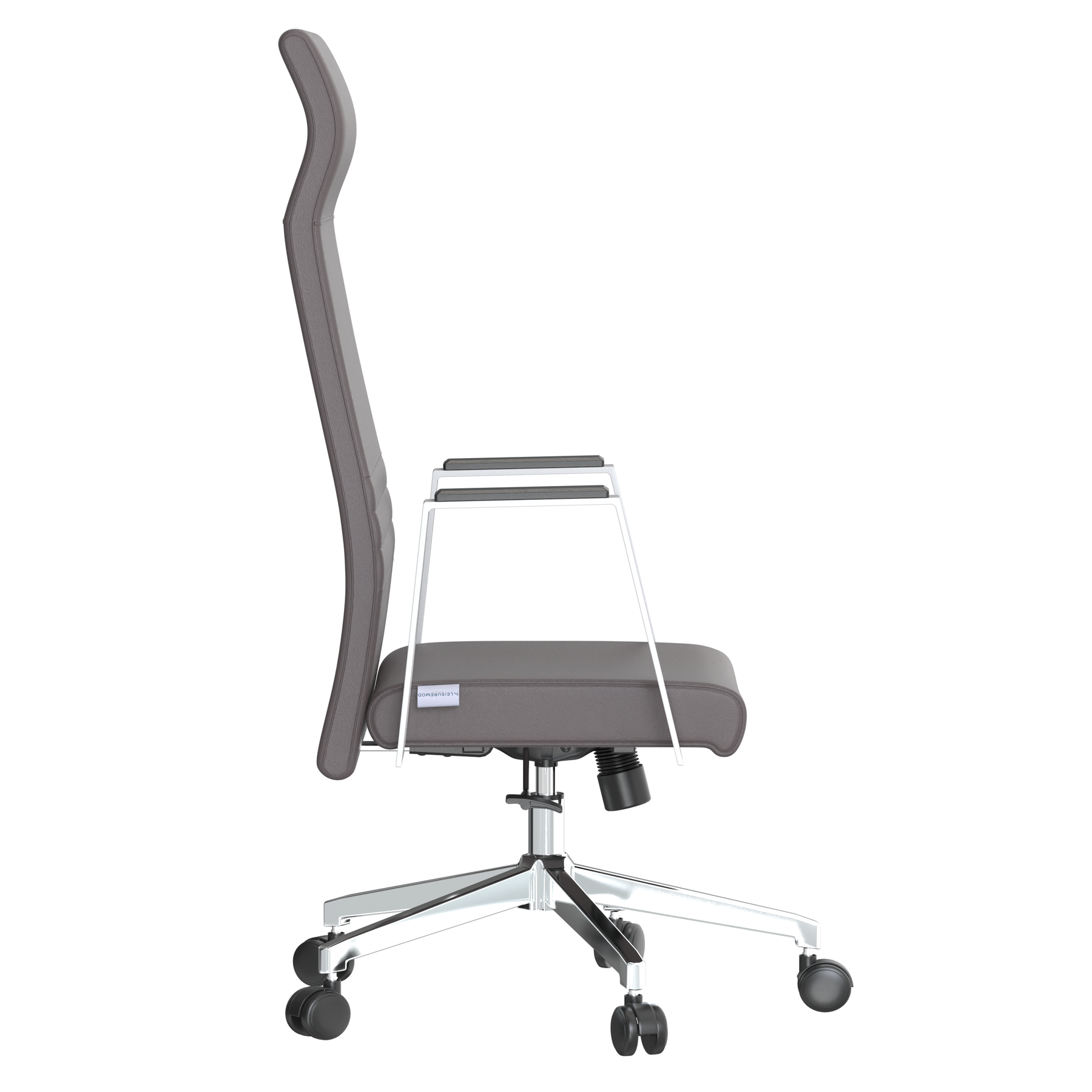 Aleen High-Back Office Chair in Upholstered Leather and Iron Frame with Swivel and Tilt in Grey
