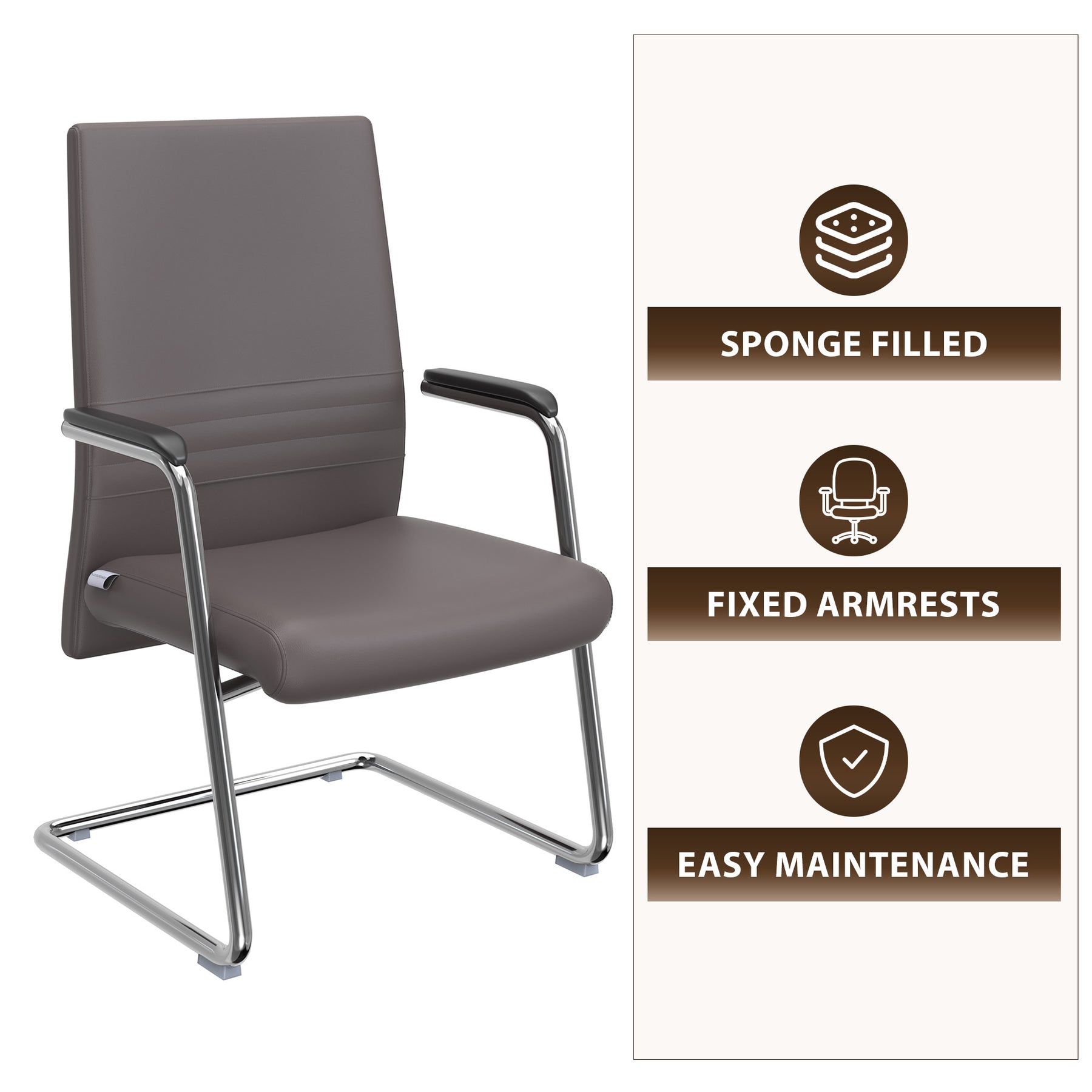 Aleen Series Guest Office Chair In Grey Leather
