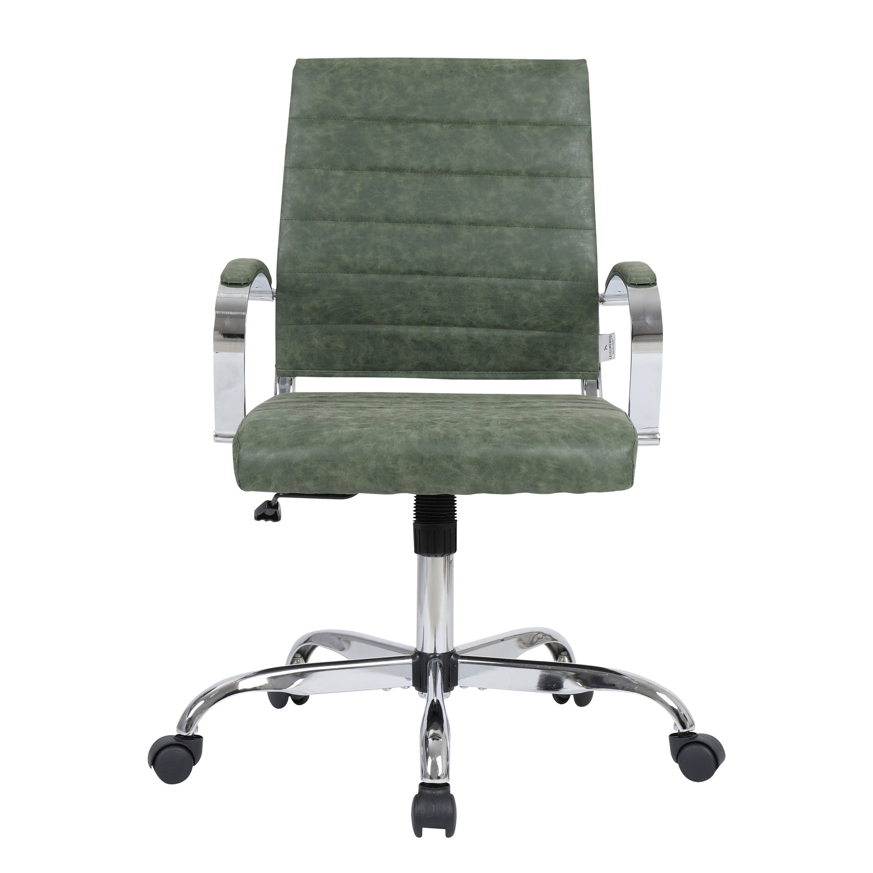 Embrace full luxury with this exceptional Benmar office chair built to provide optimal comfort and a sophisticated aesthetic. Make a statement with an adjustable mid-century style chair that completes the contemporary office space. Inspired by a classic mid-century design, this version shows off a bold and sophisticated presence. With a pneumatic gas lift to adjust the seat height and 360-degree swivel, this chair delivers the versatility and functionality required by the modern working environment. A tension knob and tilt locking lever complement a catered five-point base for easy mobility.