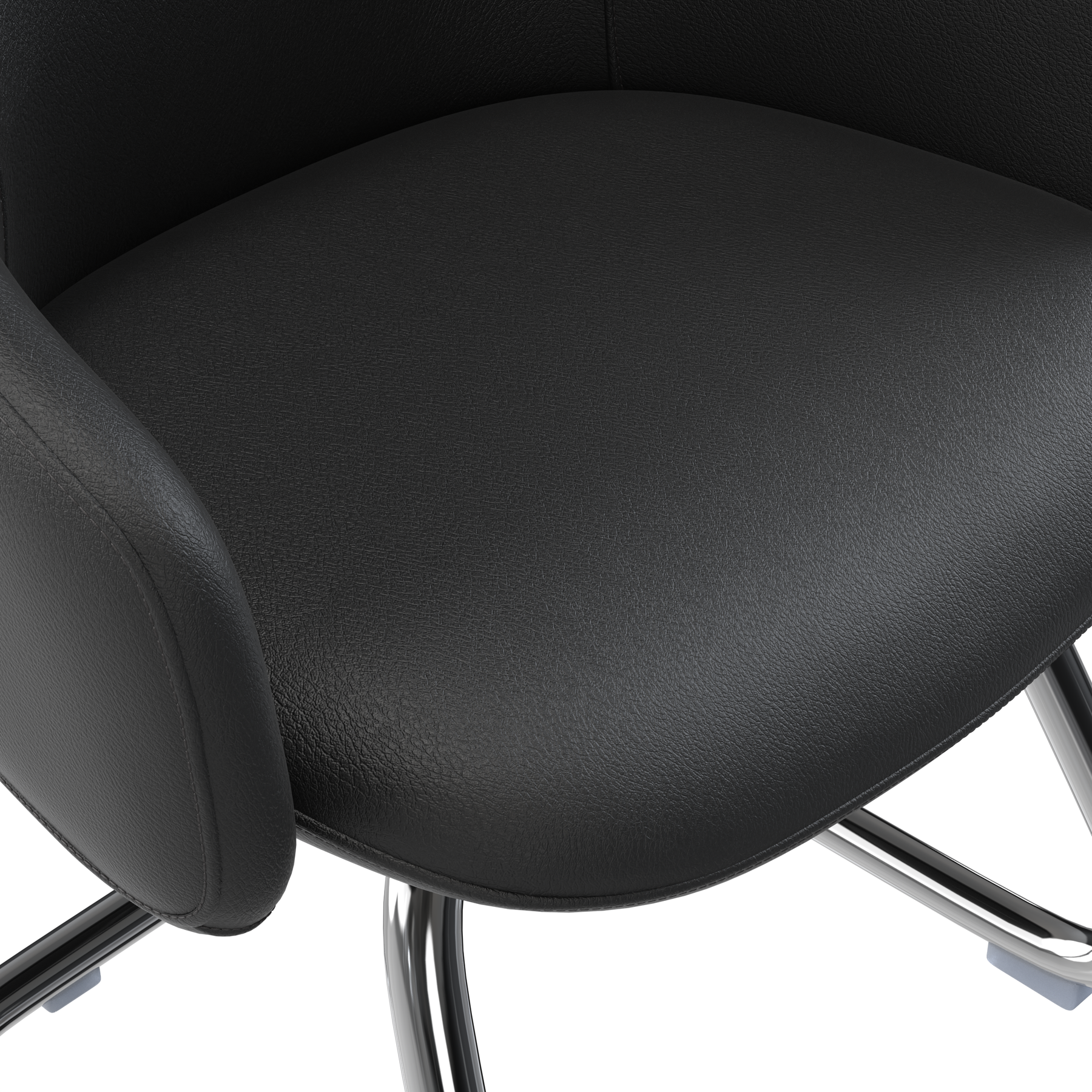 - The office chair uses upholstered faux leather which is a soft and comfortable material. It is also easy to clean and maintain, making it a practical choice for office furniture.
