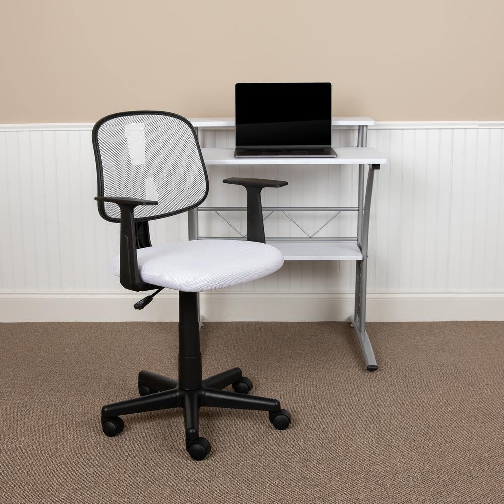 Flash Fundamentals Mid-Back White Mesh Swivel Task Office Chair with Pivot Back and Arms, BIFMA Certified