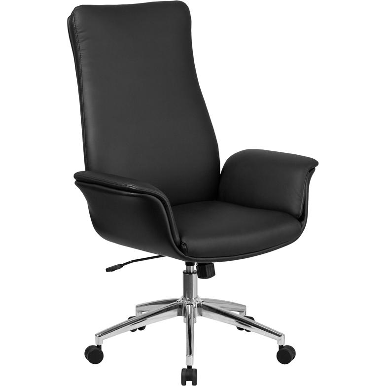 High Back Black LeatherSoft Executive Swivel Office Chair with Flared Arms