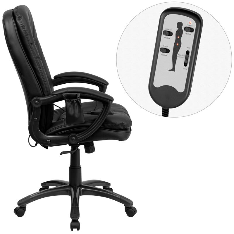 High Back Ergonomic Massaging Black LeatherSoft Executive Swivel Office Chair with Remote Pocket and Arms