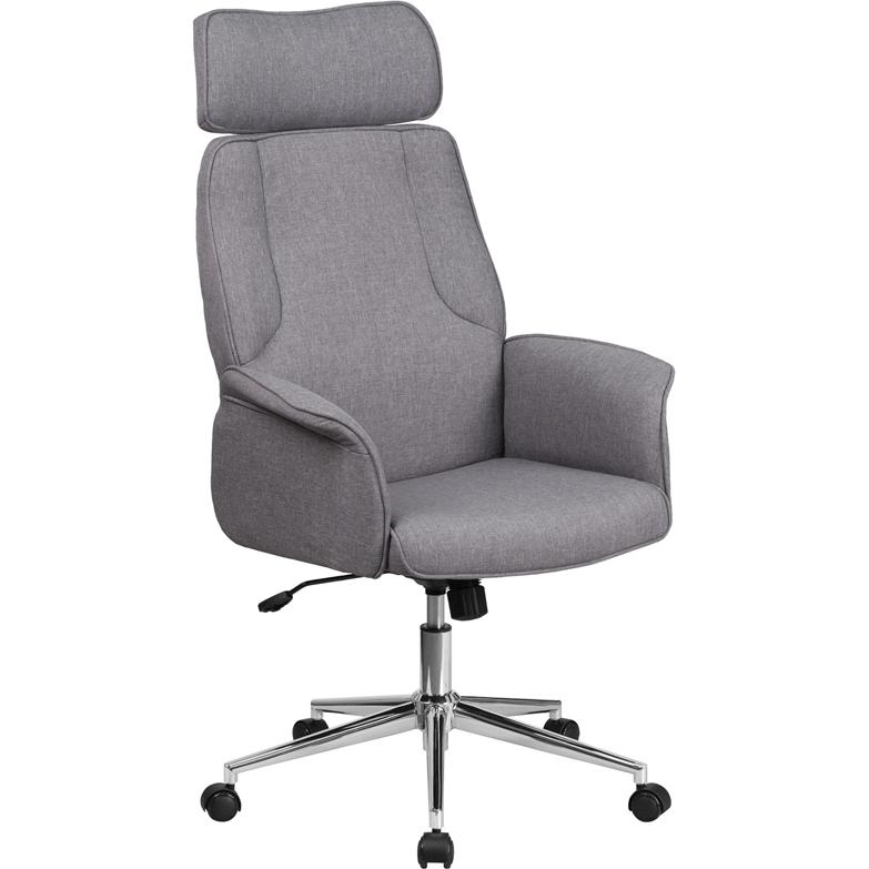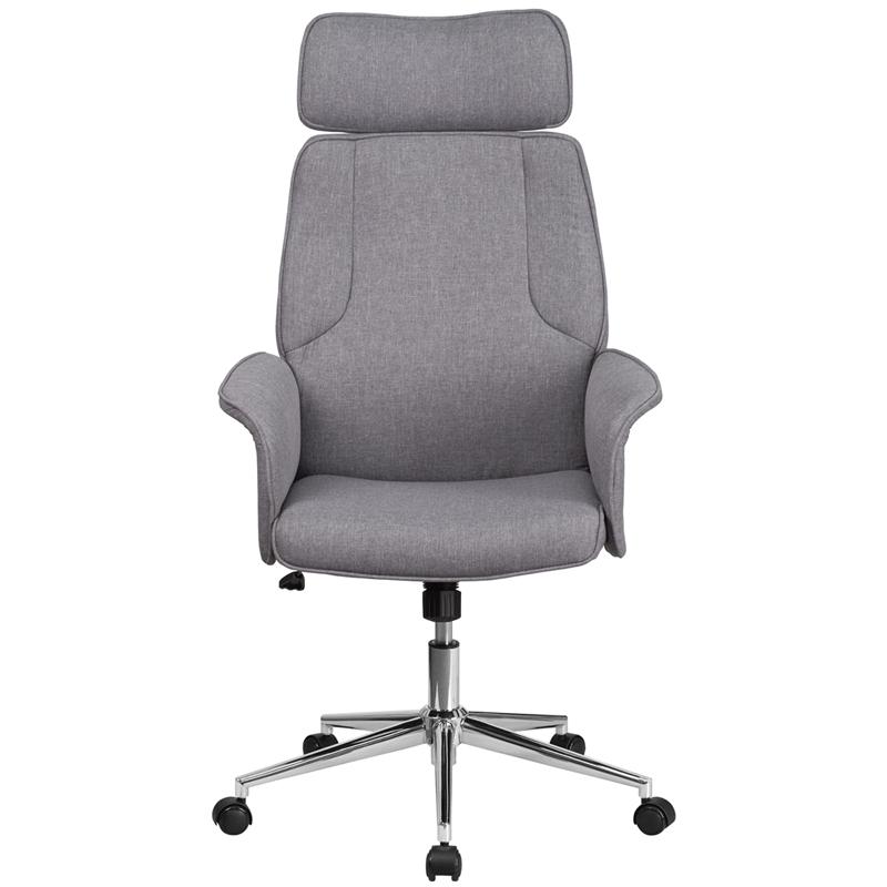 High Back Gray Fabric Executive Swivel Office Chair with Chrome Base and Fully Upholstered Arms