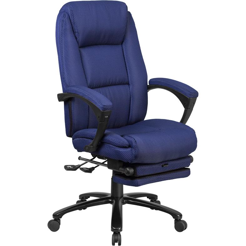 High Back Navy Fabric Executive Reclining Ergonomic Swivel Office Chair with Comfort Coil Seat Springs and Arms