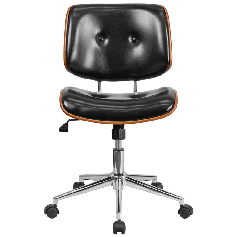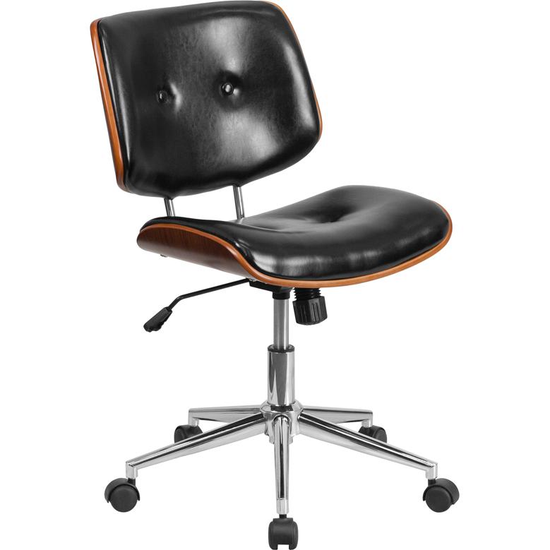 Low Back Black LeatherSoft Ergonomic Wood Swivel Task Office Chair