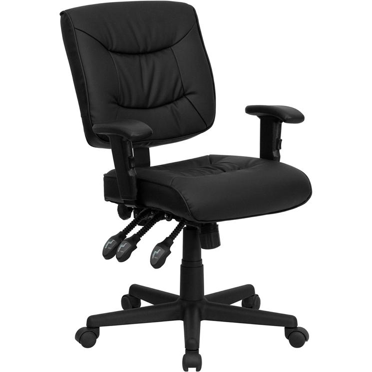 Mid-Back Black LeatherSoft Multifunction Swivel Ergonomic Task Office Chair with Adjustable Arms