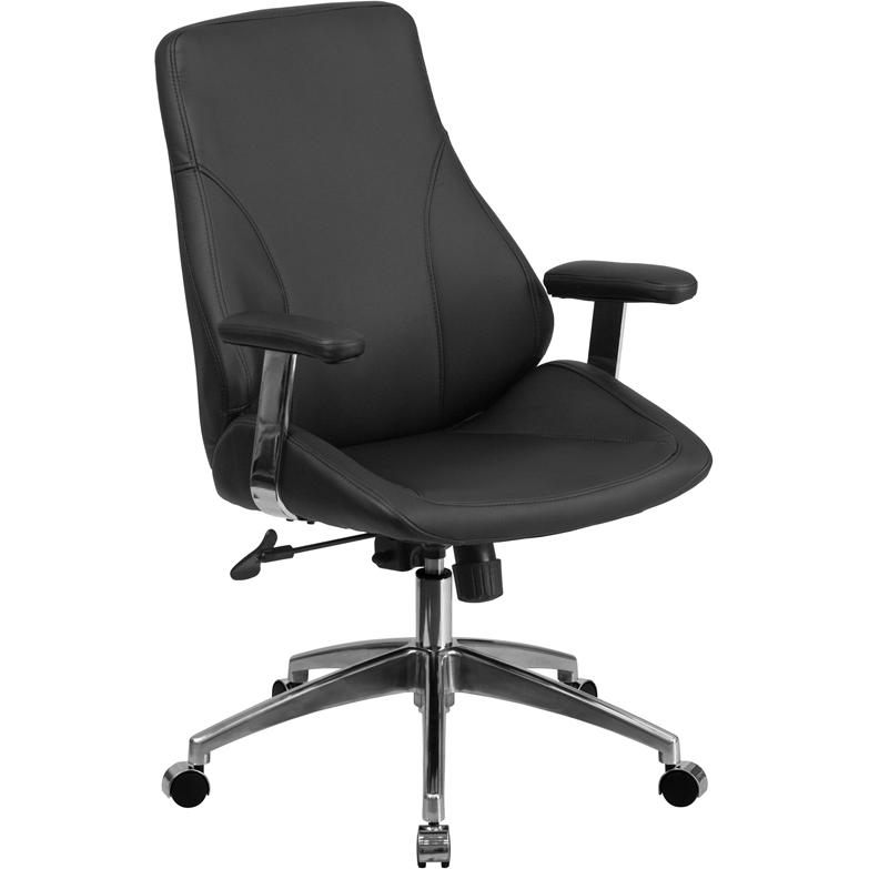 Mid-Back Black LeatherSoft Smooth Upholstered Executive Swivel Office Chair with Arms