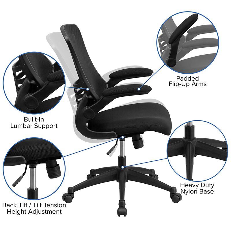 Mid-Back Black Mesh Swivel Ergonomic Task Office Chair with Flip-Up Arms, BIFMA Certified