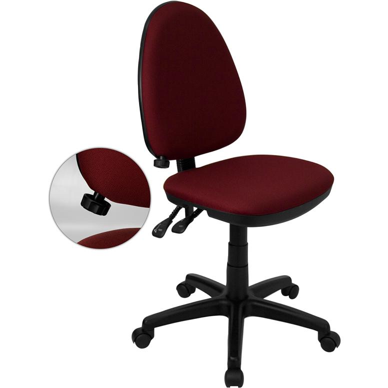 Mid-Back Burgundy Fabric Multifunction Swivel Ergonomic Task Office Chair with Adjustable Lumbar Support