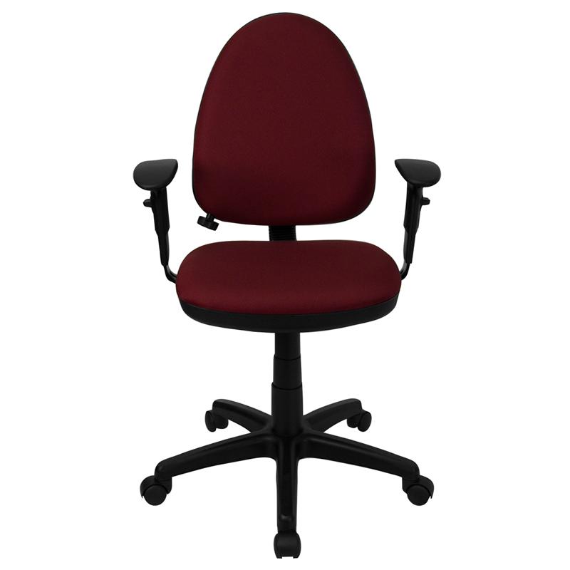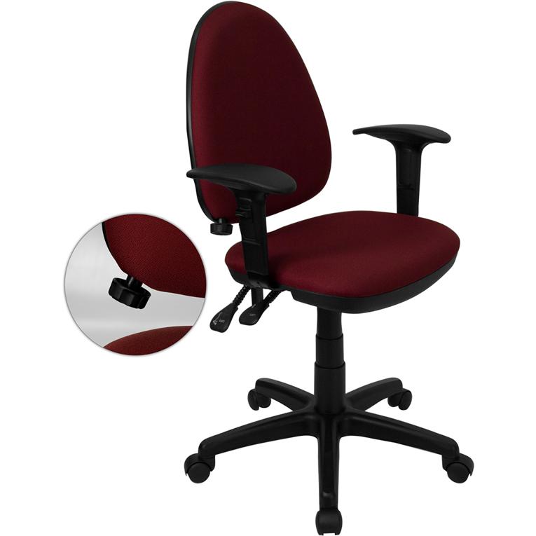 Mid-Back Burgundy Fabric Multifunction Swivel Ergonomic Task Office Chair with Adjustable Lumbar Support & Arms