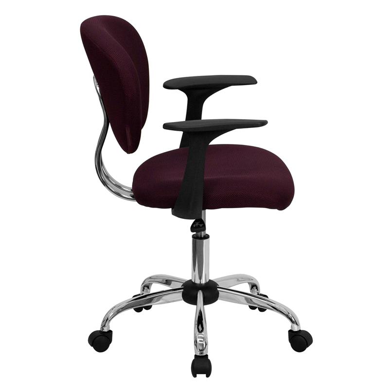 Mid-Back Burgundy Mesh Padded Swivel Task Office Chair with Chrome Base and Arms
