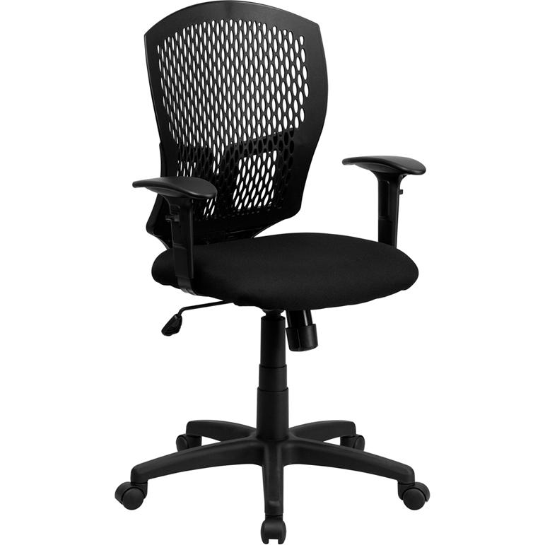 Mid-Back Designer Back Swivel Task Office Chair with Fabric Seat and Adjustable Arms