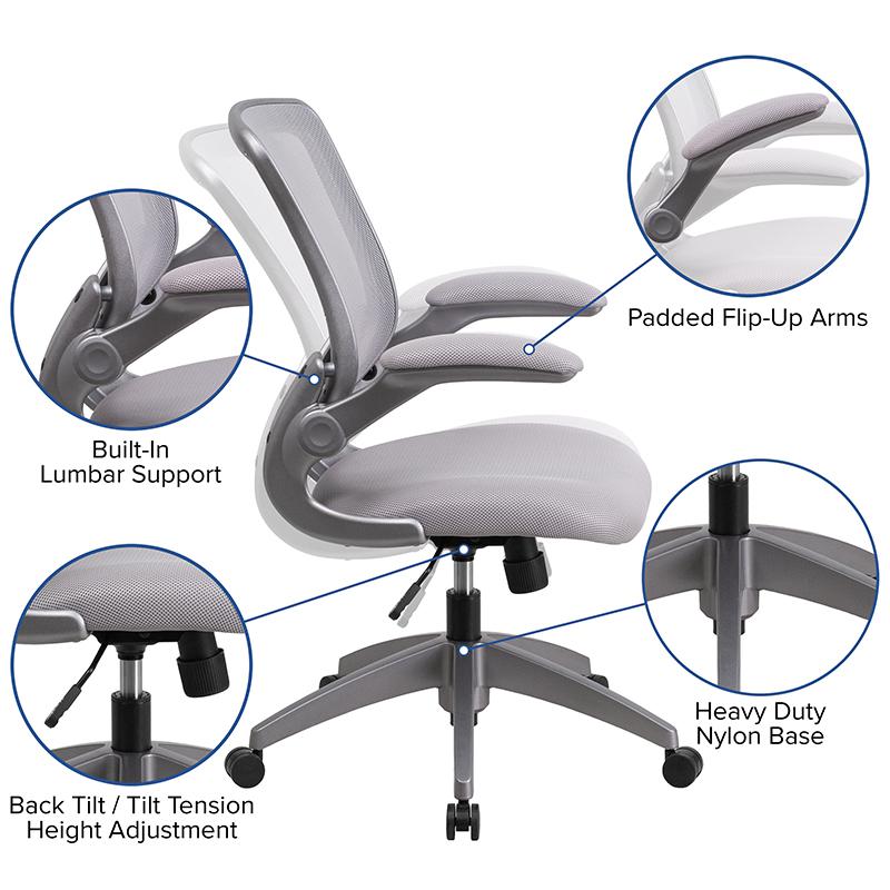 Mid-Back Gray Mesh Swivel Ergonomic Task Office Chair with Gray Frame and Flip-Up Arms