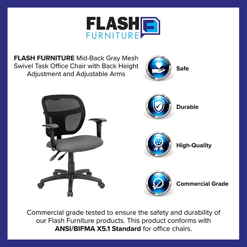 Mid-Back Gray Mesh Swivel Task Office Chair with Back Height Adjustment and Adjustable Arms