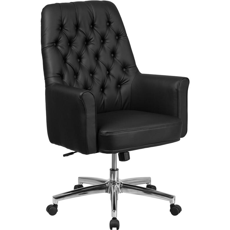 Mid-Back Traditional Tufted Black LeatherSoft Executive Swivel Office Chair with Arms