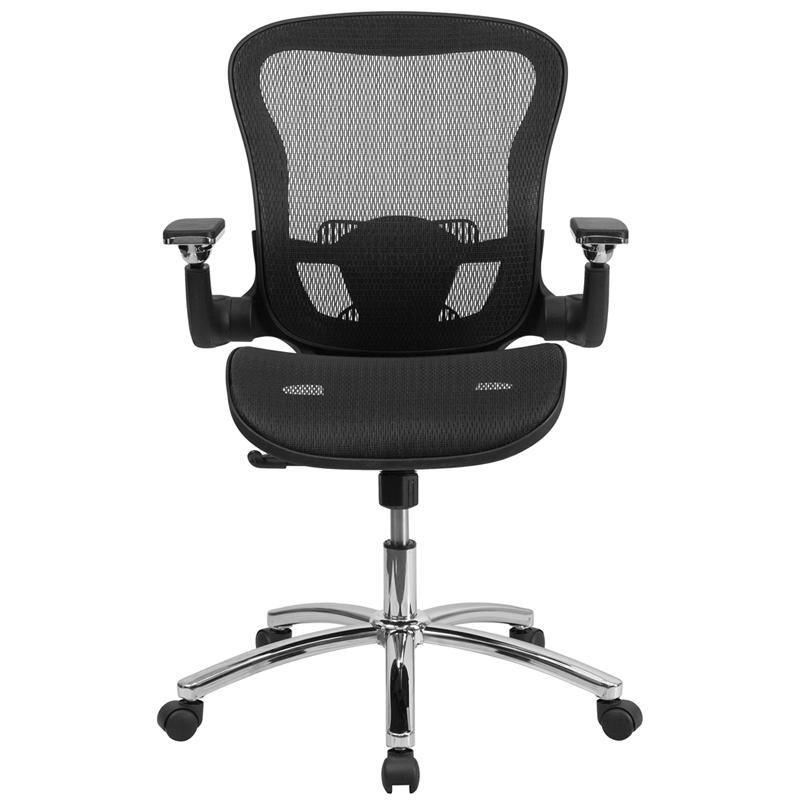 Mid-Back Transparent Black Mesh Executive Swivel Ergonomic Office Chair with Synchro-Tilt & Height Adjustable Flip-Up Arms