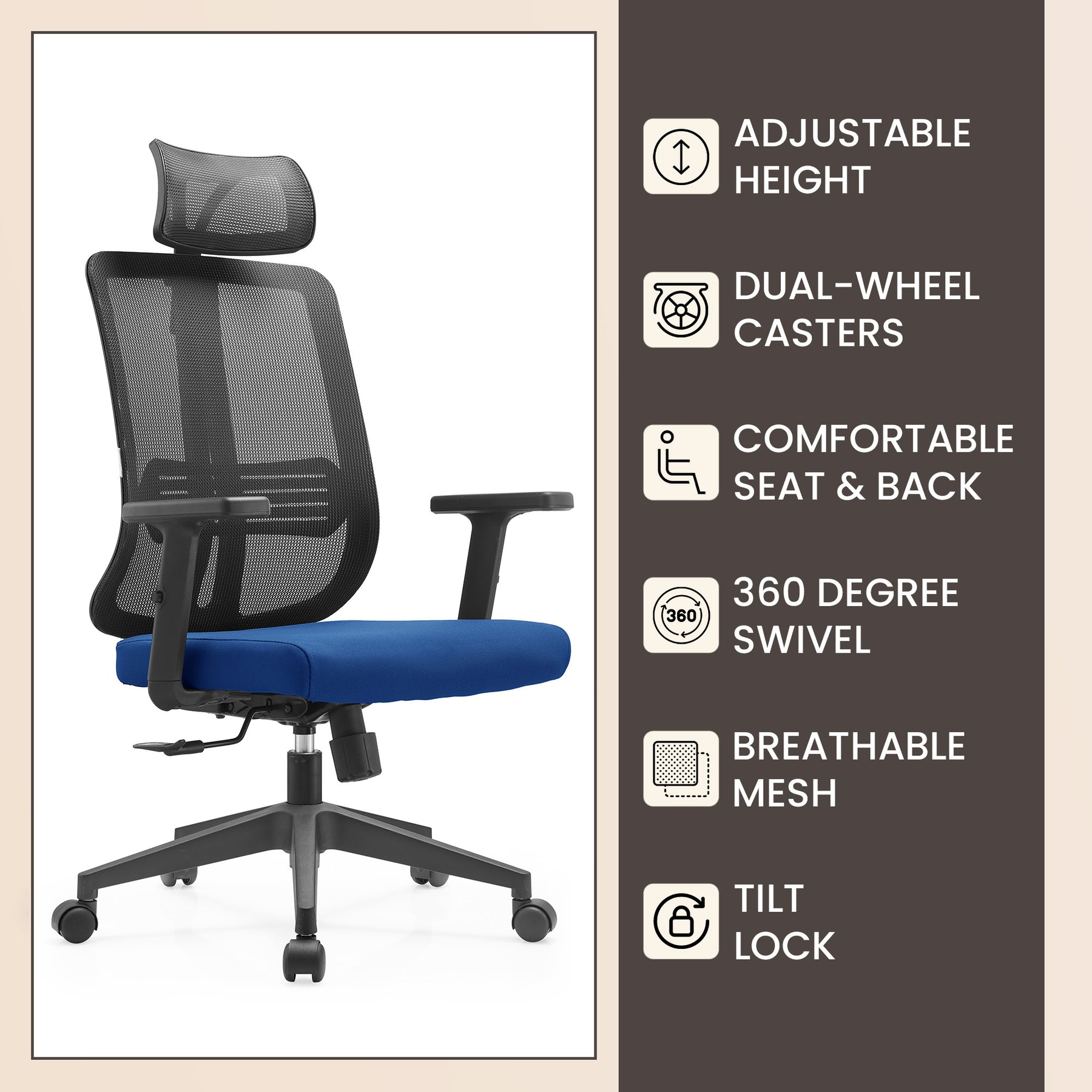 Elevate your office space with the Nift Series Modern Office Chair by Skyline. Designed with a sleek mesh back and headrest for enhanced breathability and support, this office chair ensures comfort during long hours. The adjustable height and armrests allow for personalized ergonomics, while the durable ABS plastic frame supports up to 265 lbs. Easy to assemble and maintain, the Nift Modern Office Chair is the perfect blend of style and functionality for any workspace.