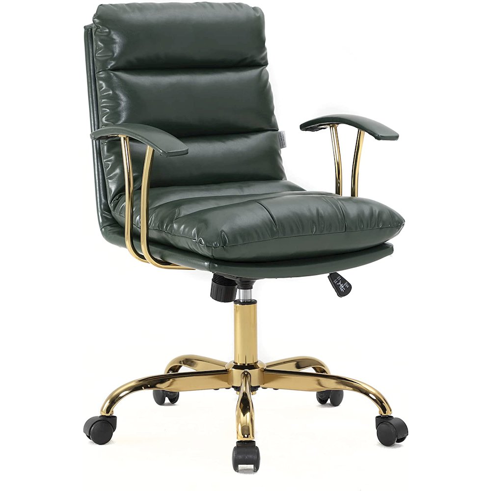 Time Spent In Your Office Should Be Comfortable And Relaxing, And This Stylish And Elegant Office Chair Is Designed With Your Comfort In Mind. This Rolling Desk Chair Has Thick Foam Cushioning Covered In Attractive Leather. Use The Executive Chair’S 360-Degree Swivel Wheels So You Can Easily Get Around The Office. The Chair’S Gold Steel Base Is Fitted With Five Dual-Wheel Casters, While A Tension Knob And Tilt Lock Allow For Easy Back Position Adjustments. This Chair Delivers The Versatility And Functionality Required By The Modern Working Environment. Quality Components And A Durable Design Ensure This Regina Office Chair Is Built To Last.
