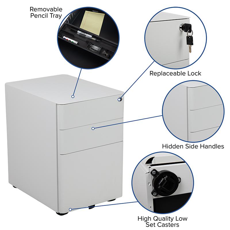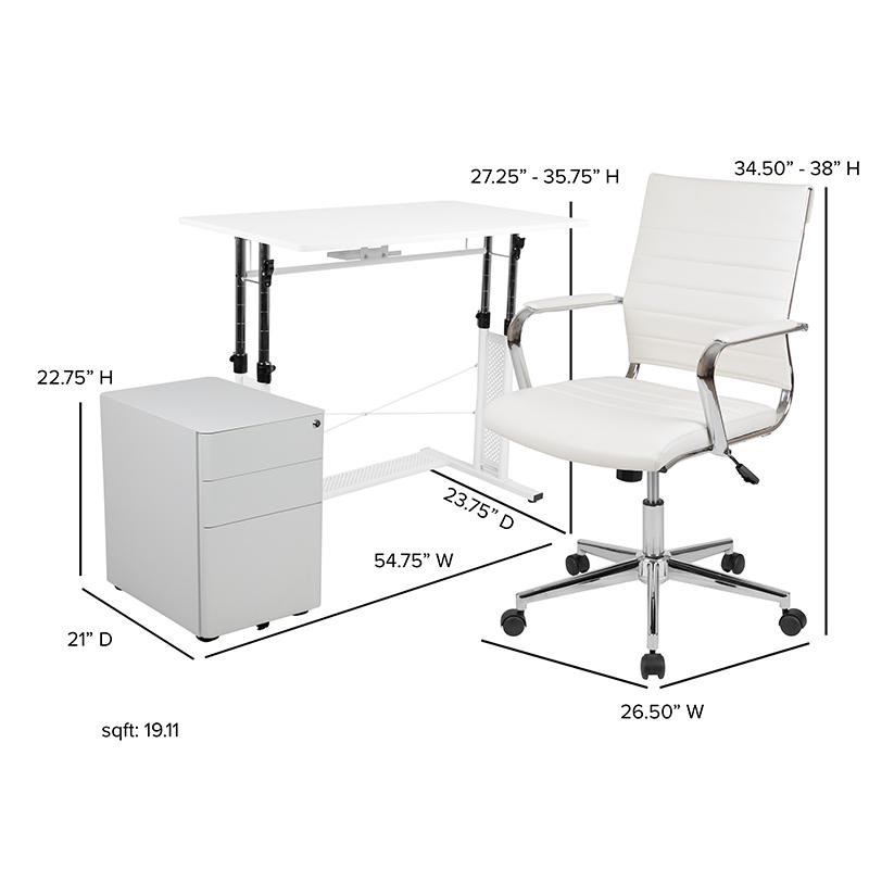 Work From Home Kit - White Adjustable Computer Desk, LeatherSoft Office Chair and Side Handle Locking Mobile Filing Cabinet