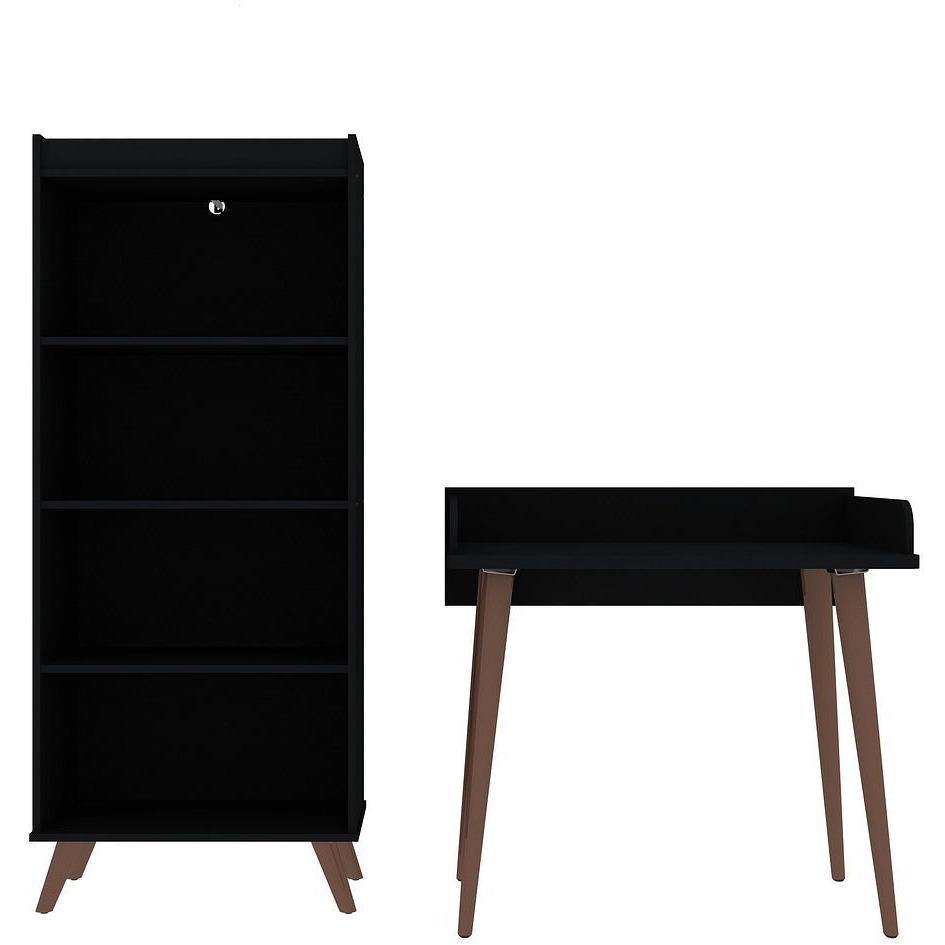 Hampton 2- Piece Home Basic Furniture Office Set with Writing Desk and Bookcase in Black