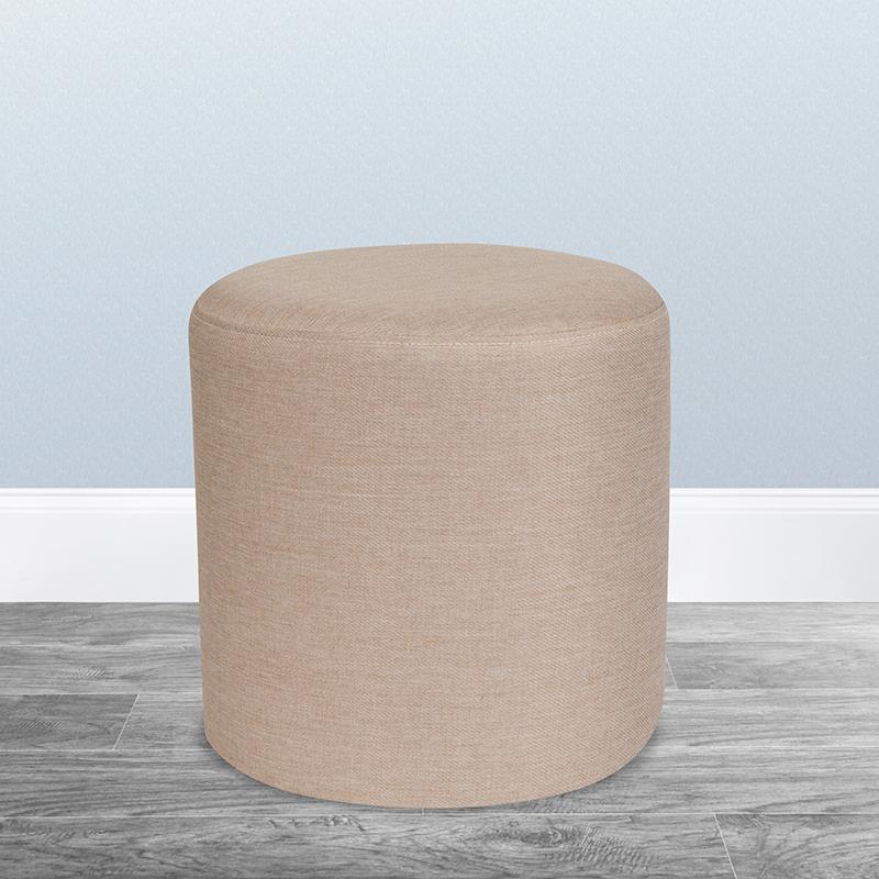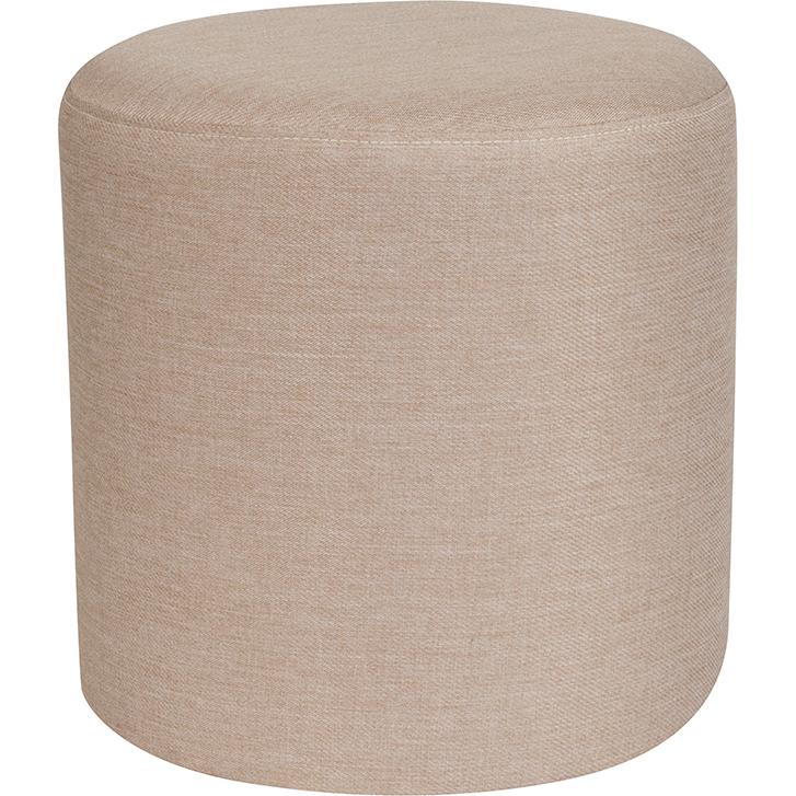 Barrington Upholstered Round Ottoman Pouf in Beige Fabric