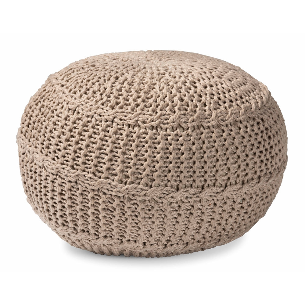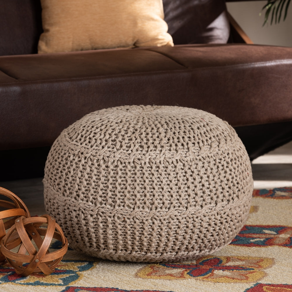 Palmas Modern and Contemporary Bohemian Beige Handwoven Pet Yarn Pouf Ottoman