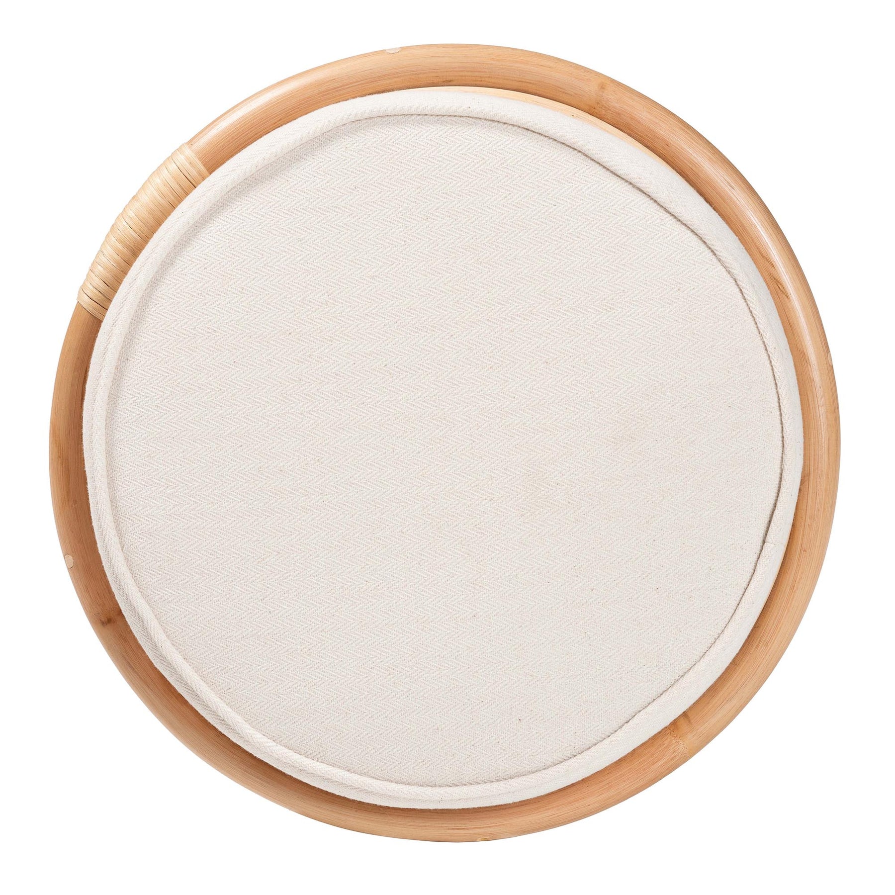 Exhibit an air of carefree elegance in your space with the lovely Junius ottoman. Made in Indonesia, this bohemian piece is handcrafted from natural rattan by skilled artisans and is topped with a removable fabric-upholstered cushion. Its round silhouette displays a beautiful openwork design adorned with rattan pole for a beautifully airy design from any angle. The Junius will arrive fully assembled and serves as a fantastic footstool or extra seating as needed. Boasting exotic grace in handy design, the Junius ottoman brings serenity to any arrangement. Disclaimer: Rattan is a product of nature and may have variations in areas such as, but not limited to, color, pattern, grain and texture. The hair-like strands of rattan/rattan-fiber are common due to the nature of the material.