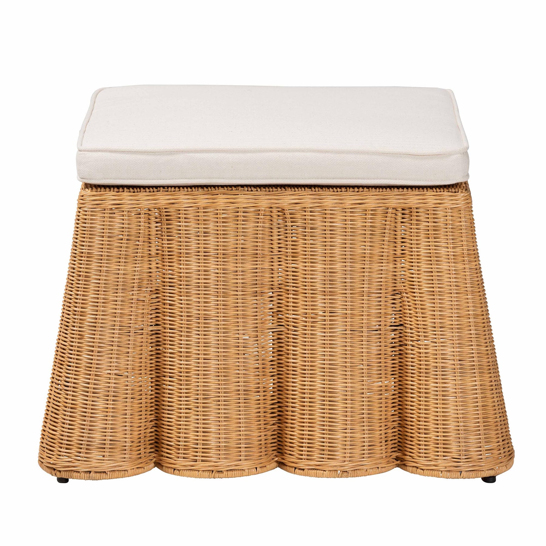 Palm Bohemian Honey Scallop Rattan Ottoman