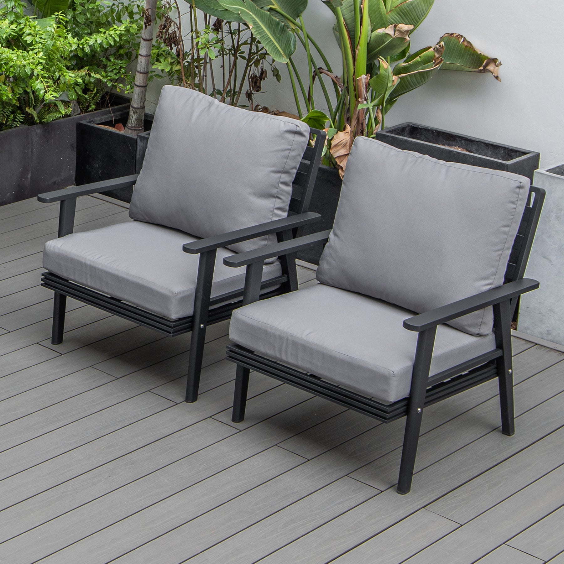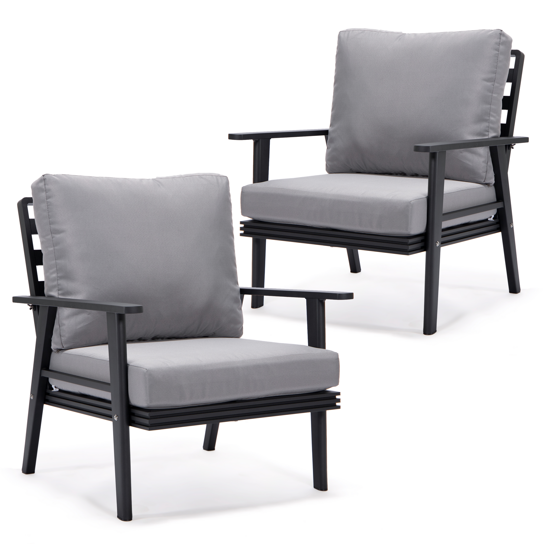 Walbrooke Modern Black Patio Arm Chair, Set of 2 in Grey