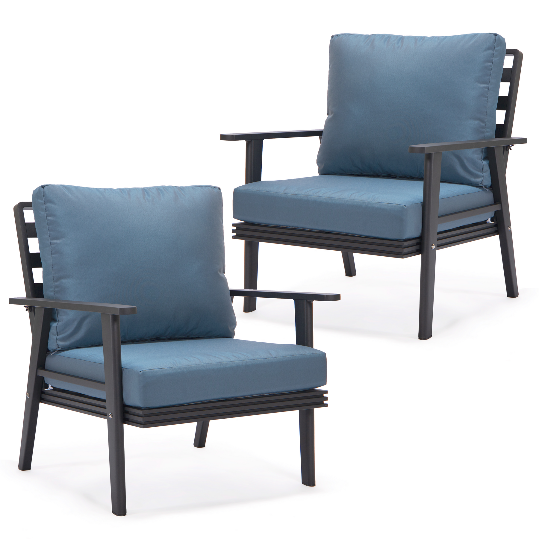 Walbrooke Modern Black Patio Arm Chair, Set of 2 in Navy Blue
