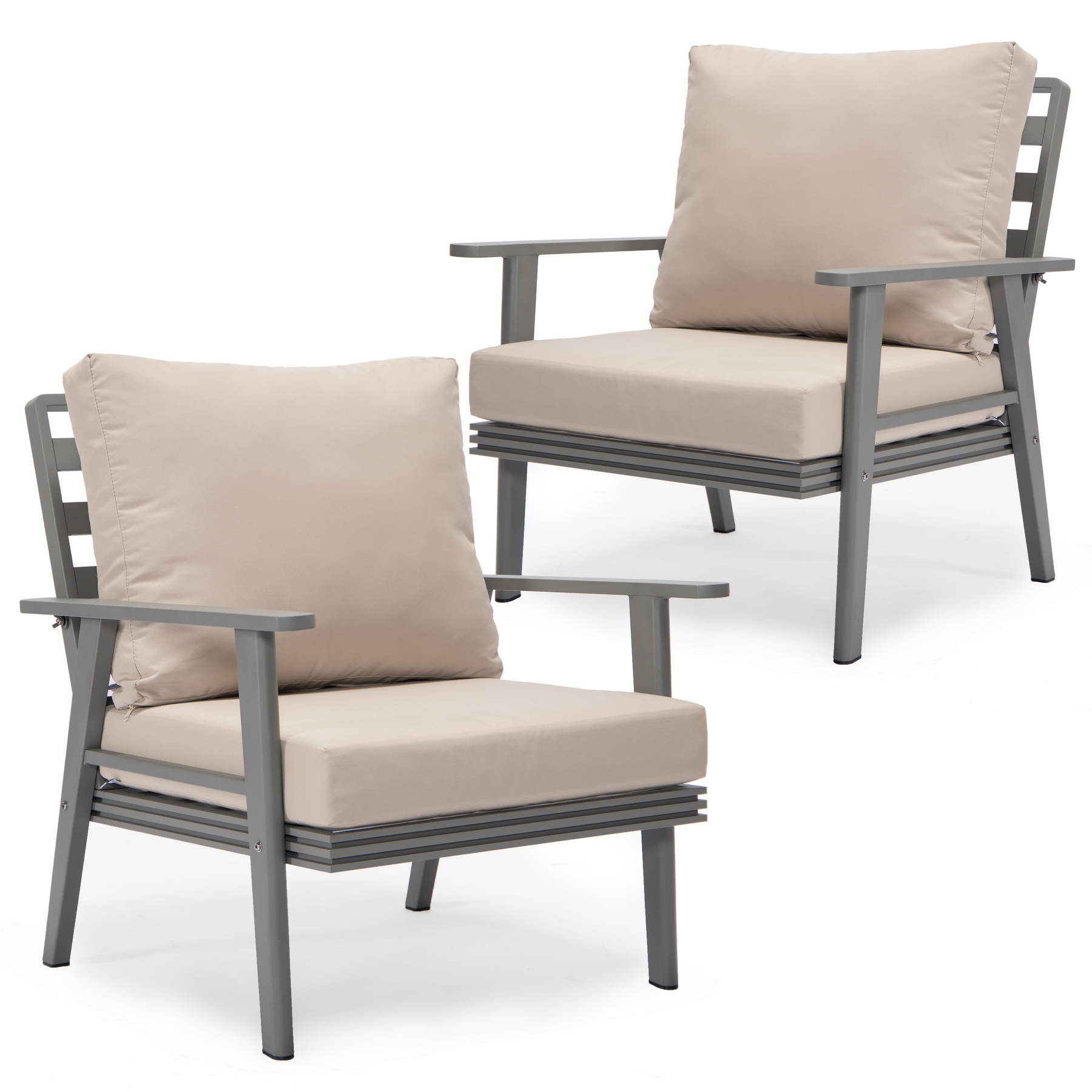 Walbrooke Modern Grey Patio Arm Chair, Set of 2 in Beige