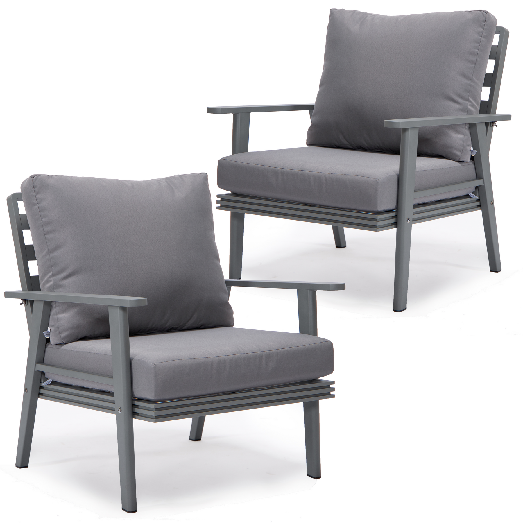 Walbrooke Modern Grey Patio Arm Chair, Set of 2 in Grey