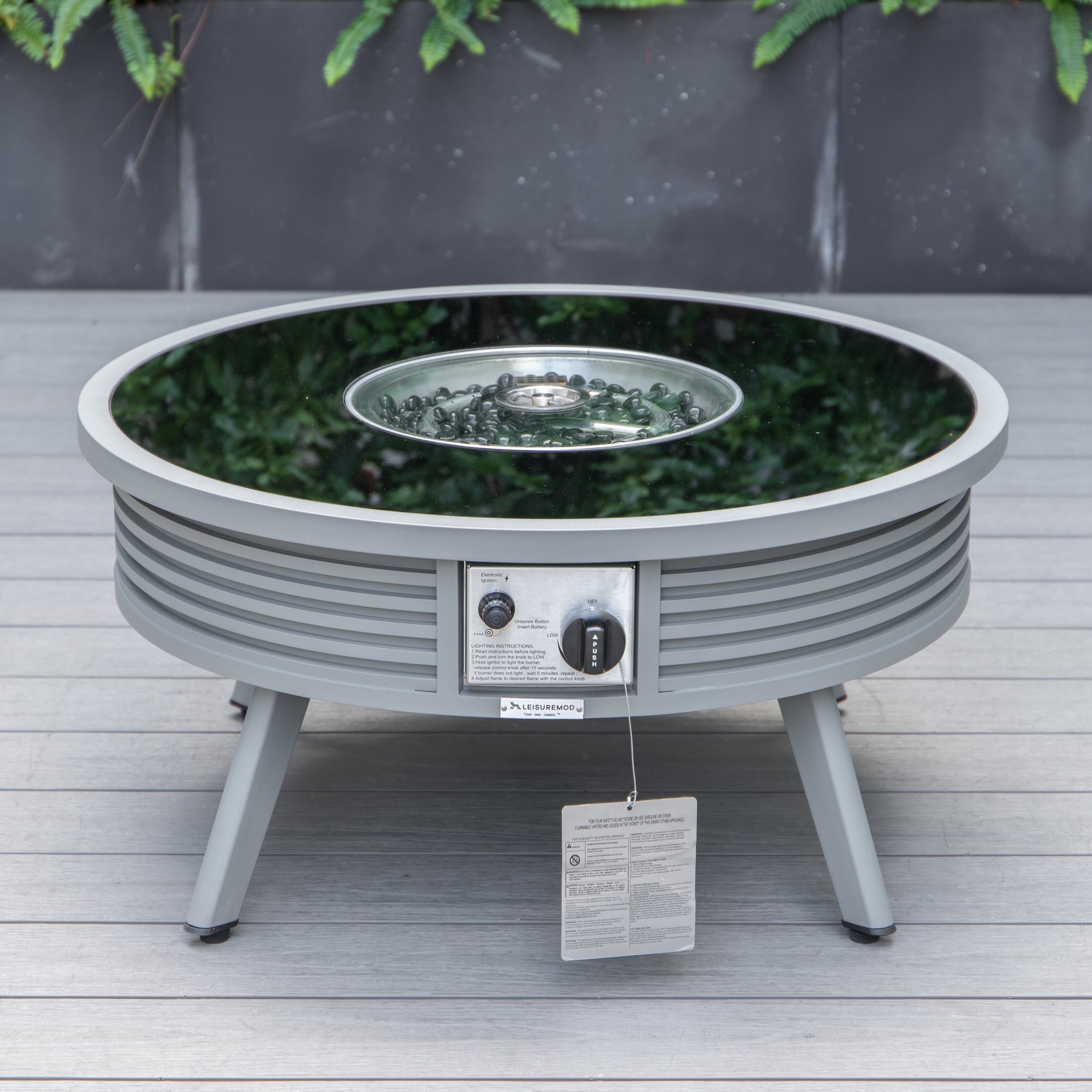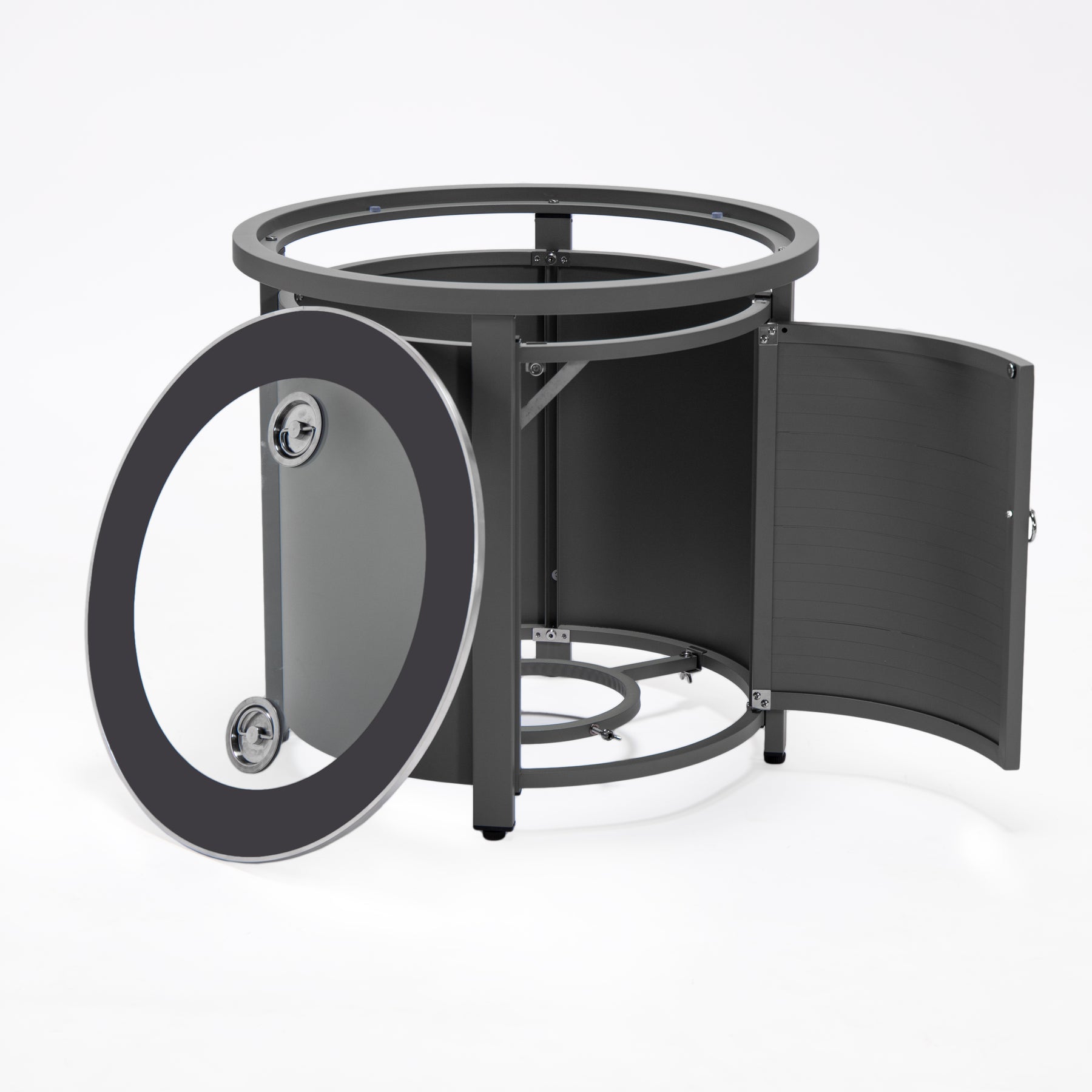 Walbrooke Modern Grey Patio Conversation With Round Fire Pit With Slats Design & Tank Holder