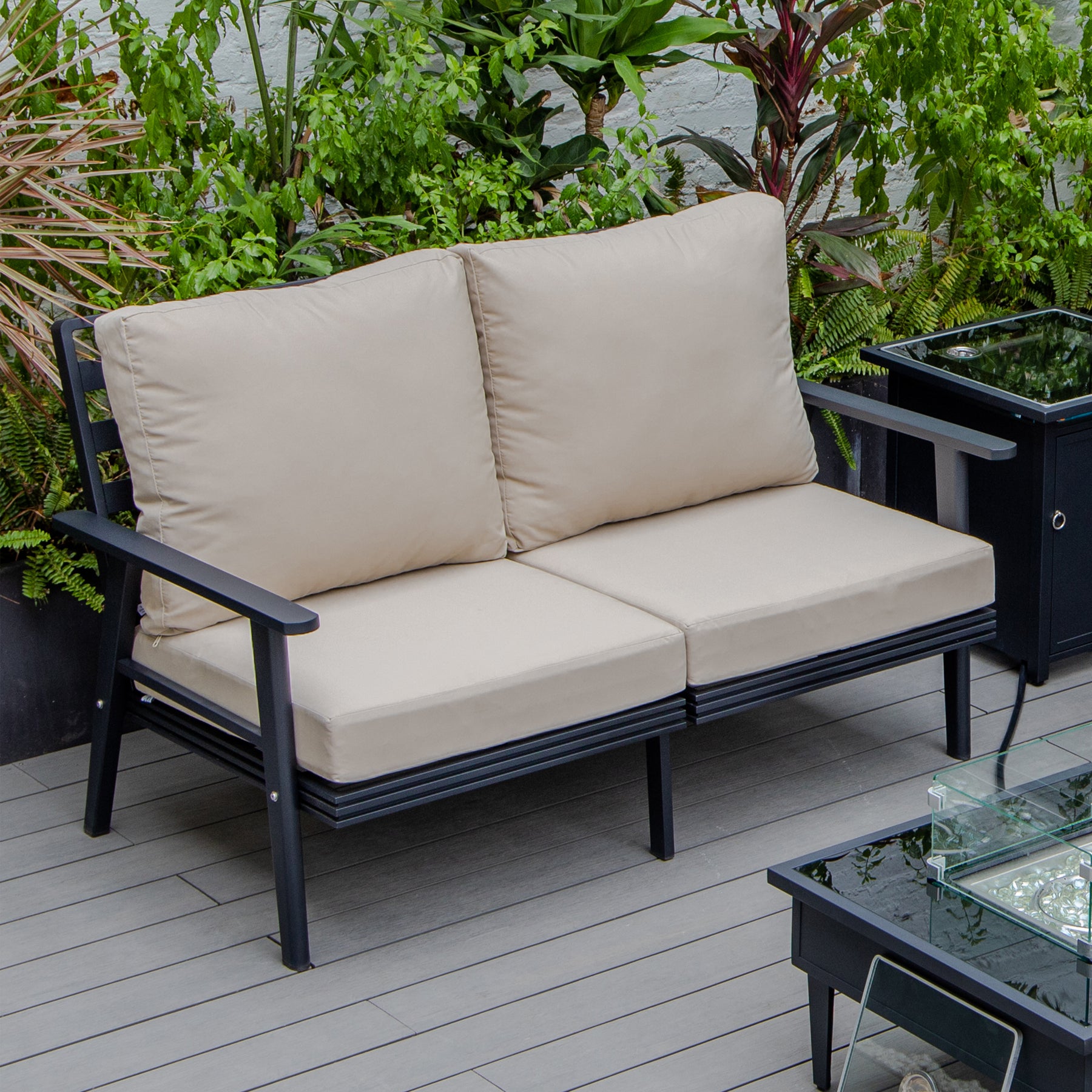 Walbrooke Modern Outdoor Patio Loveseat with Black Aluminum Frame and Removable Cushions For Patio and Backyard Garden