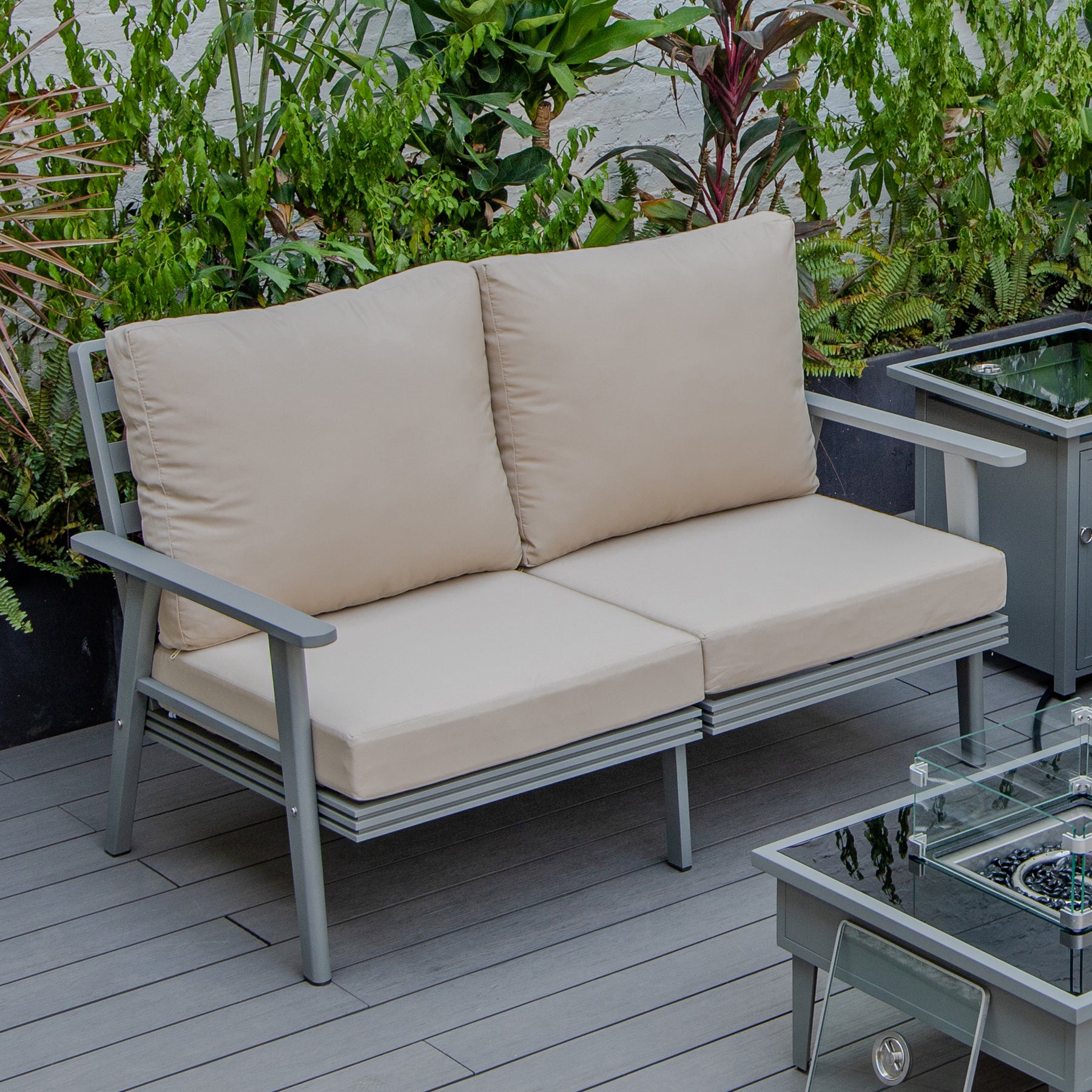 Walbrooke Modern Outdoor Patio Loveseat with Gray Aluminum Frame and Removable Cushions For Patio and Backyard Garden