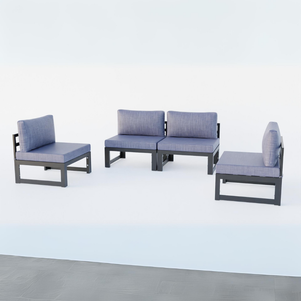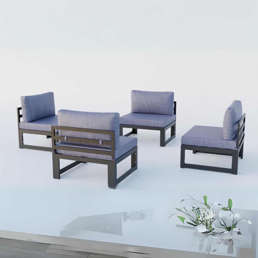 Chelsea 4-Piece Middle Patio Chairs Black Aluminum With Cushions