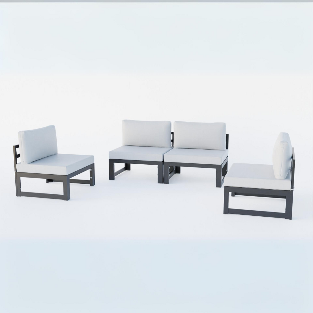 Chelsea 4-Piece Middle Patio Chairs Black Aluminum With Cushions