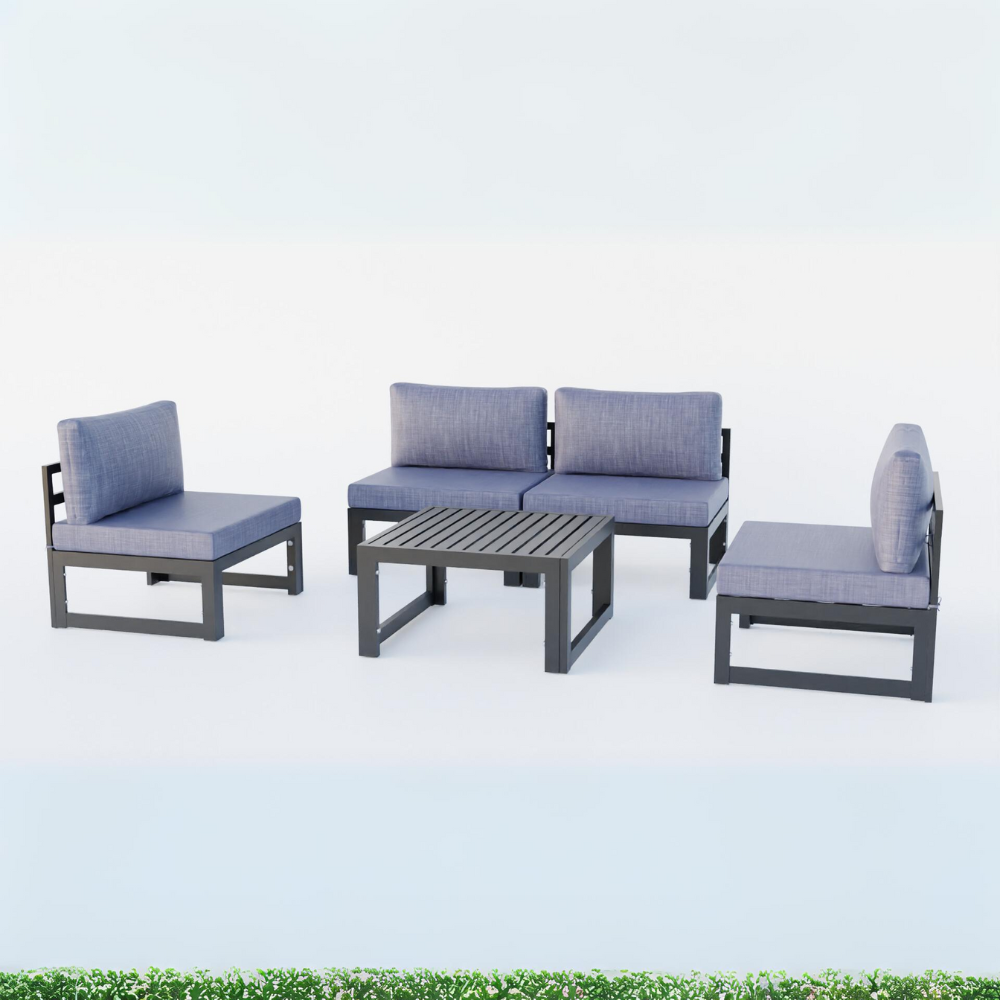 Chelsea 5-Piece Middle Patio Chairs and Coffee Table Set Black Aluminum With Cushions
