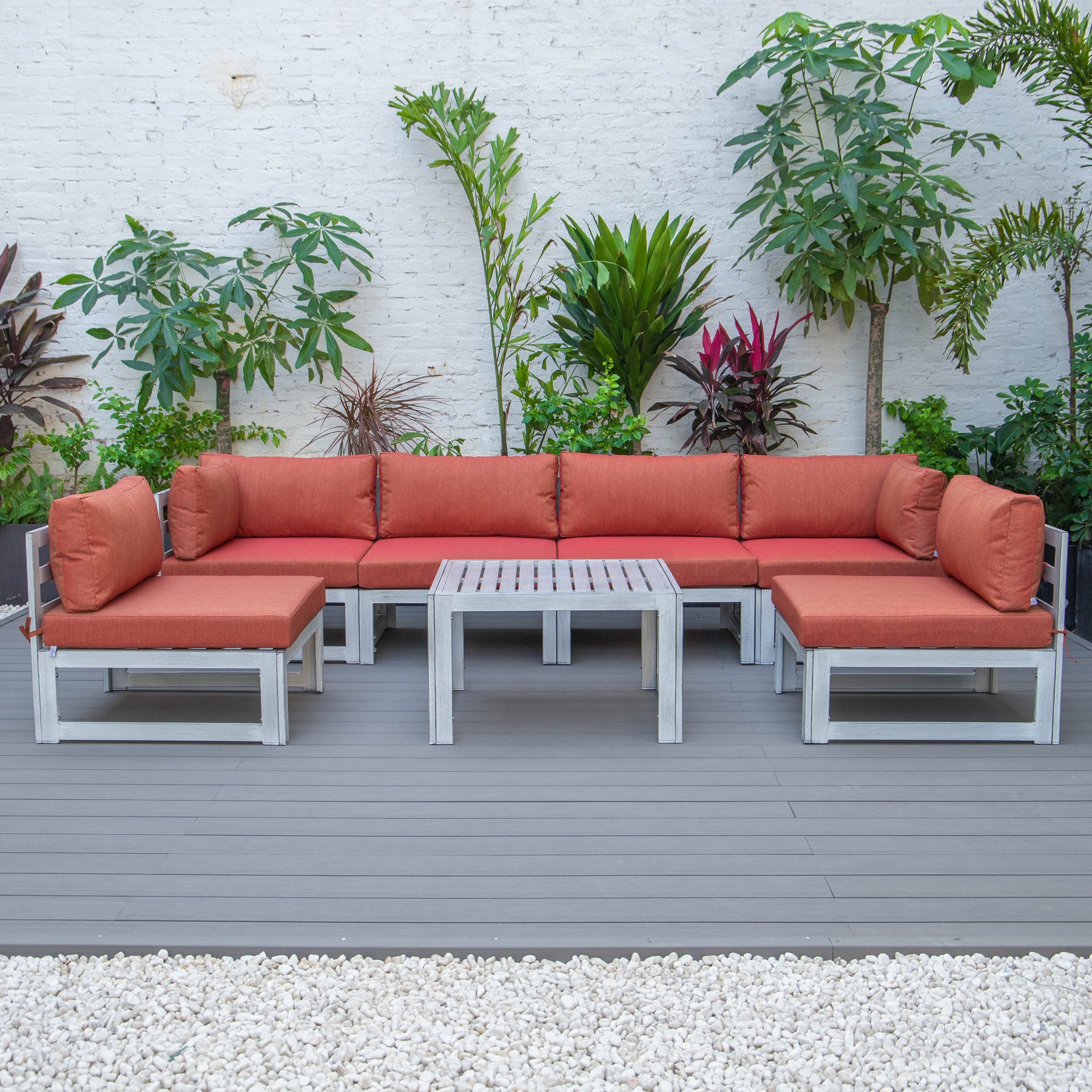 Chelsea 7-Piece Patio Sectional And Coffee Table Set Weathered Grey Aluminum With Cushions
