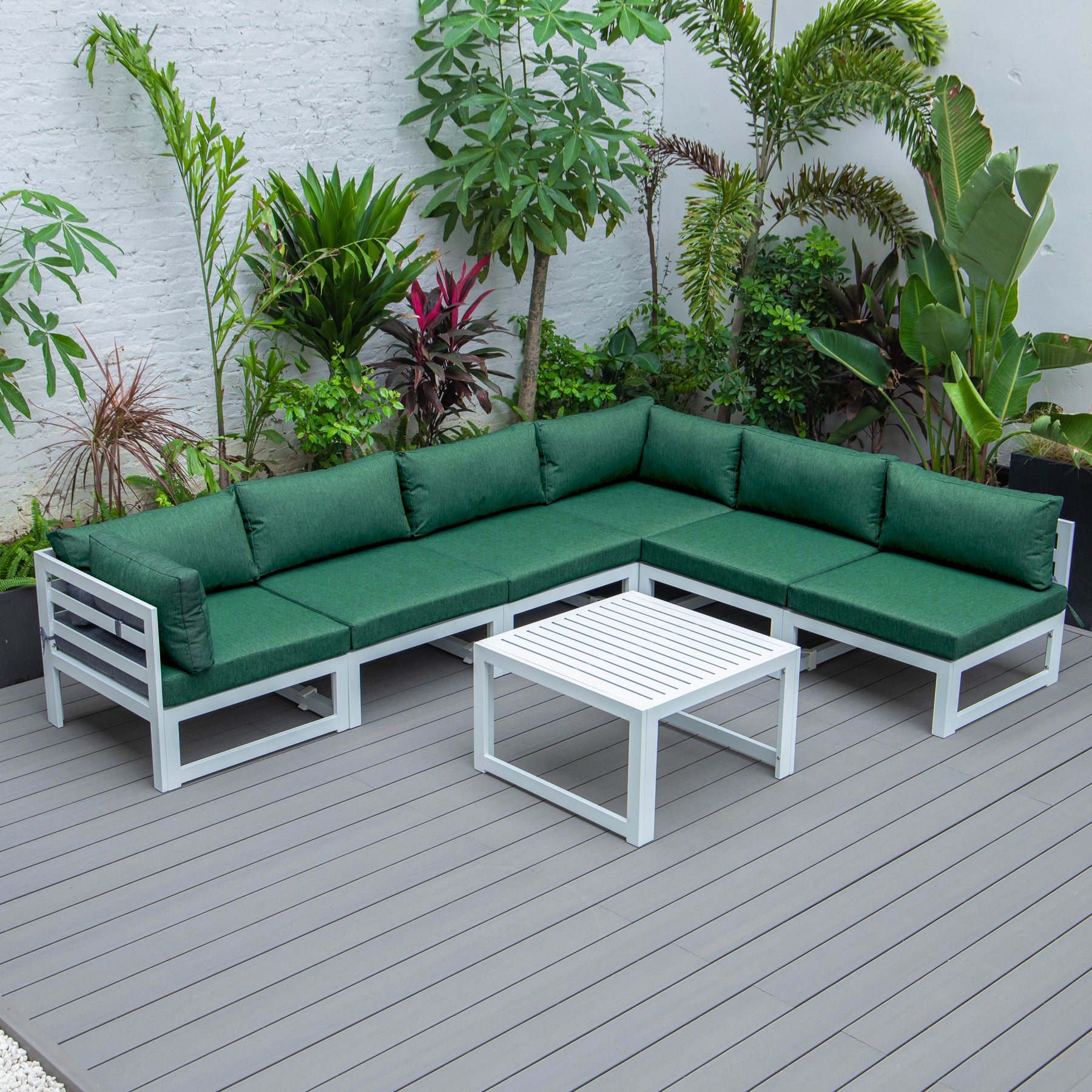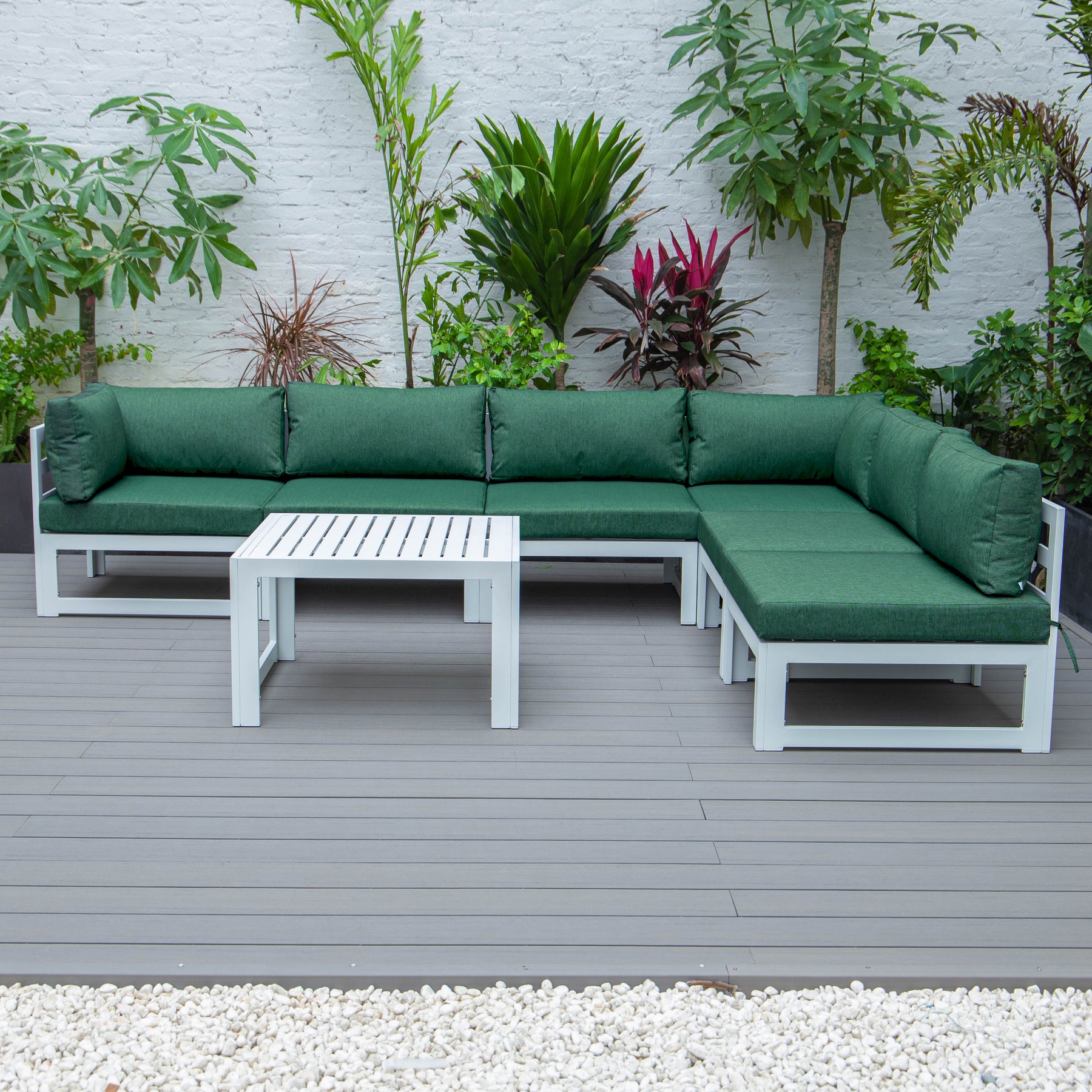 Chelsea 7-Piece Patio Sectional And Coffee Table Set White Aluminum With Cushions