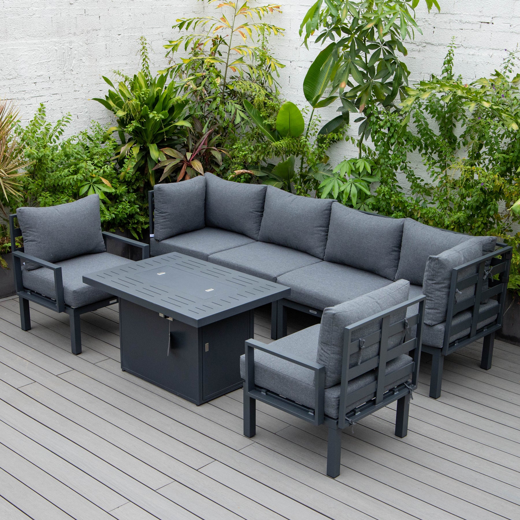 Chelsea 7-Piece Patio Sectional And Fire Pit Table Black Aluminum With Cushions