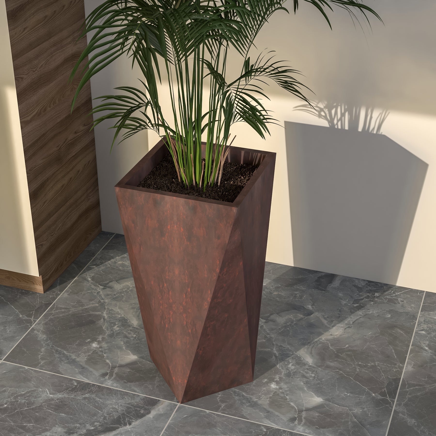 Aloe Series PolyStone Planter in Brown, 17 x 17, 34.6 High