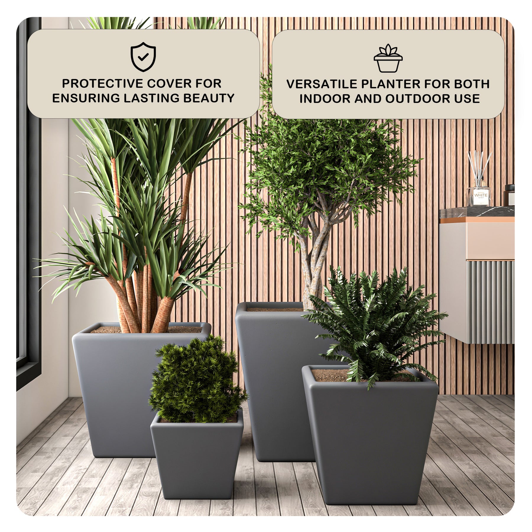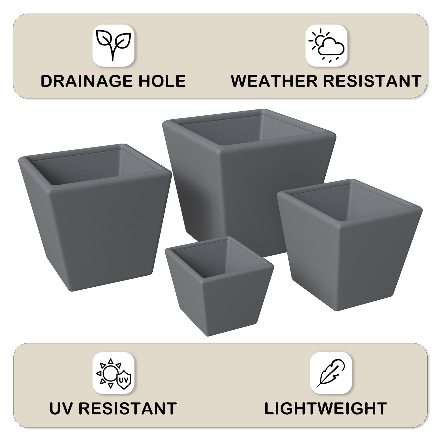 - The planter boasts a sleek Tapered Square Design that seamlessly merges modern and contemporary elements. This distinctive shape not only adds a touch of sophistication to your greenery but also complements a variety of decor styles.
