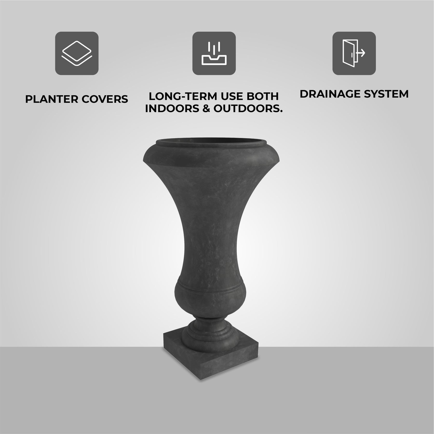 - The planter boasts a sleek Urn Design that seamlessly merges modern and contemporary elements. This distinctive shape not only adds a touch of sophistication to your greenery but also complements a variety of decor styles.
