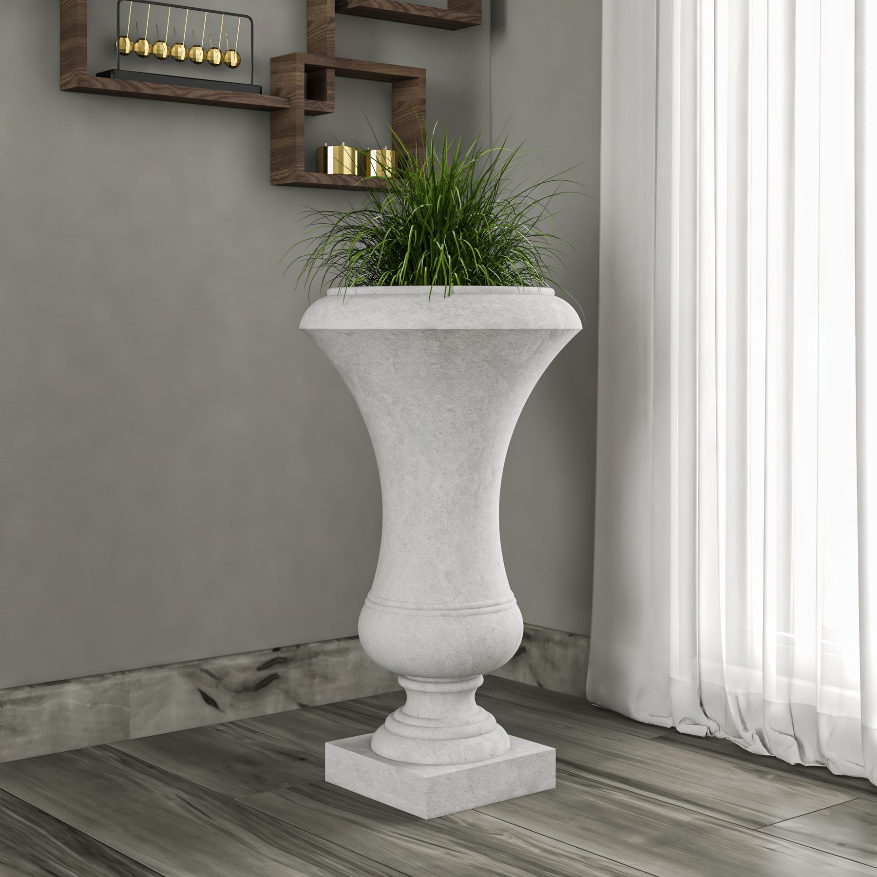 Daisy Series Poly Fiber Stone Planter in White, 14 Dia, 24.8 High