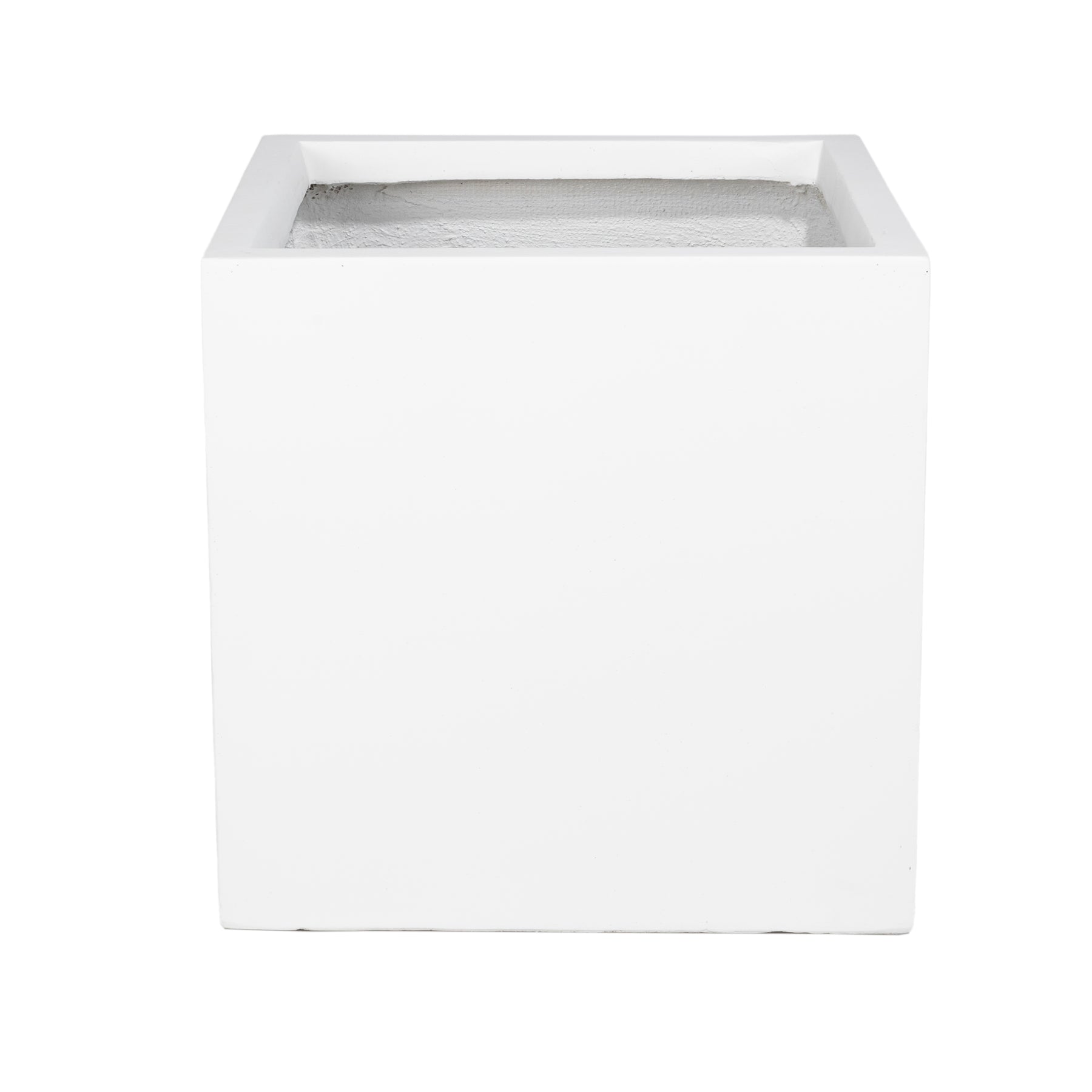 Fern Series Poly Stone Planter 19.7" Cube in White