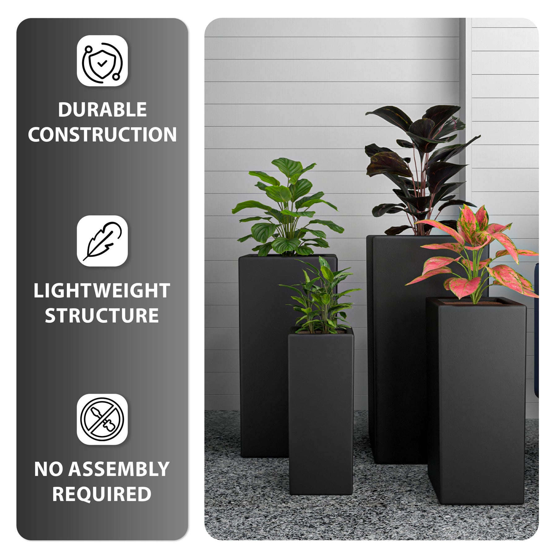 Elevate your gardening experience with our exquisite 4-Piece Fiberstone and MGO Clay Terra Planter. Crafted in a sophisticated tall square shape, this planter combines durability with aesthetic appeal. Designed with drainage holes and drill holes, it ensures proper water management for your plants. With a focus on convenience, this planter requires no assembly, allowing you to effortlessly enhance your living space with greenery. Whether you're a seasoned gardener or just starting, this planter offers a stylish and functional solution for showcasing your favorite plants.