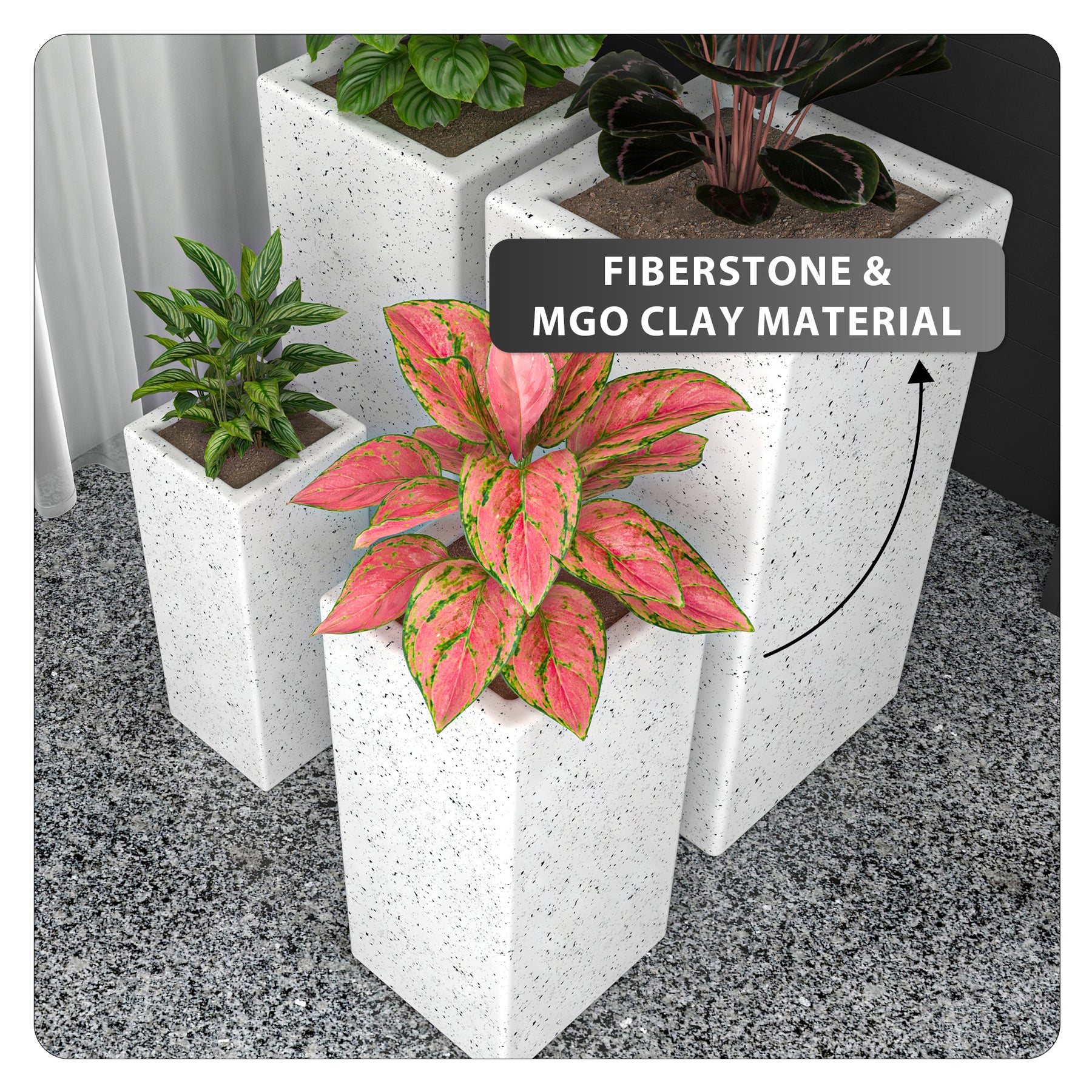 Elevate your gardening experience with our exquisite 4-Piece Fiberstone and MGO Clay Terra Planter. Crafted in a sophisticated tall square shape, this planter combines durability with aesthetic appeal. Designed with drainage holes and drill holes, it ensures proper water management for your plants. With a focus on convenience, this planter requires no assembly, allowing you to effortlessly enhance your living space with greenery. Whether you're a seasoned gardener or just starting, this planter offers a stylish and functional solution for showcasing your favorite plants.